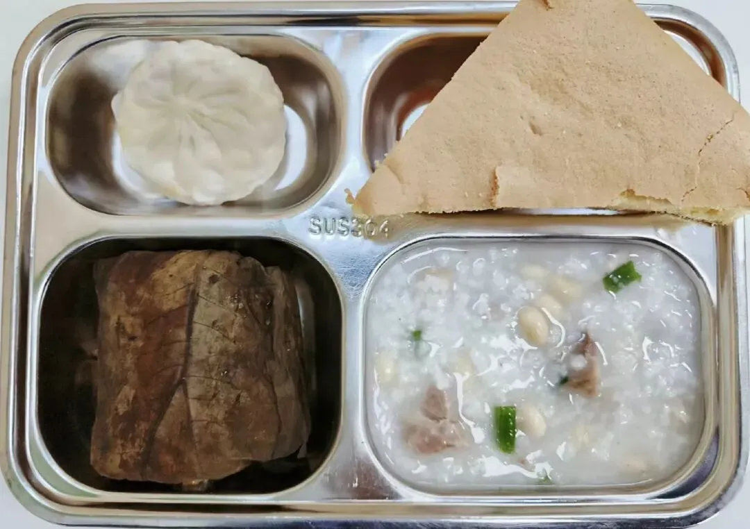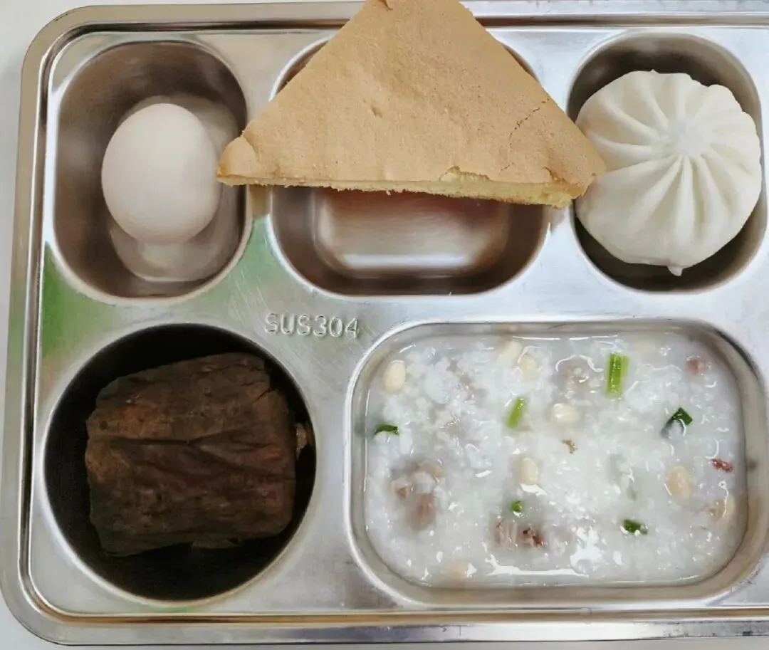 早餐示例4:黄豆咸骨粥+原味蛋糕+糯米鸡+生肉包+农家鸡蛋