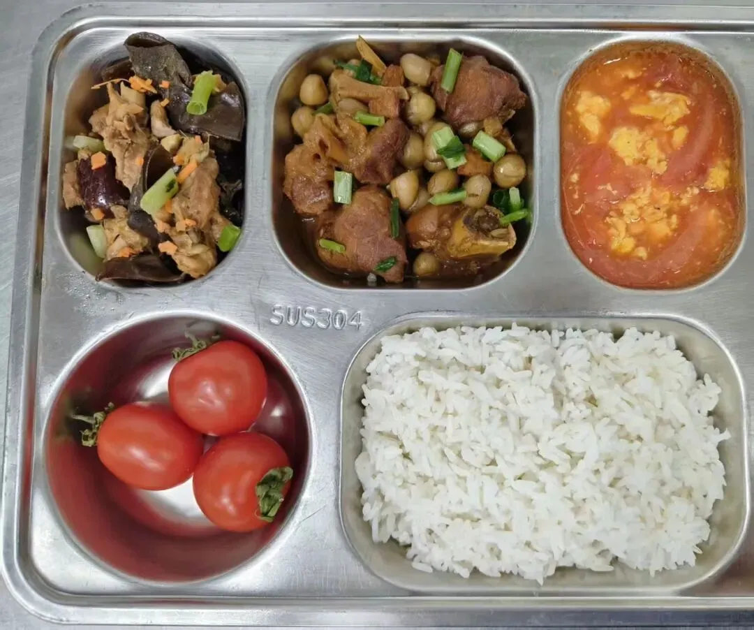 午餐示例3:花生焖猪脚+木耳红枣蒸鸡+西红柿炒蛋+米饭+水果