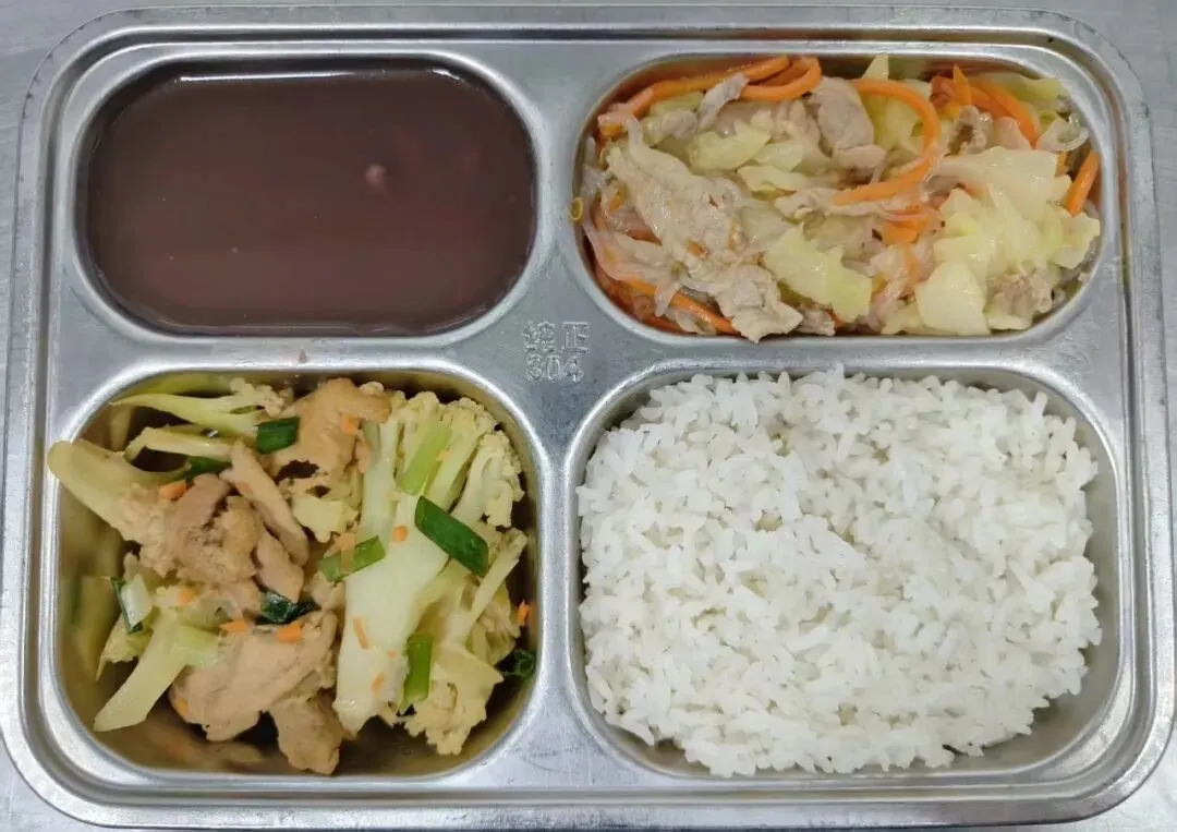 午餐示例7花菜肉片+三丝炒肉丝+米饭+红豆西米糖水