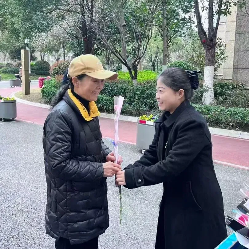 彩虹物业人手捧精心挑选的鲜花,带着真挚的笑意恭候每一位女神的到来。“祝您女神节快乐!”一句简单的问候,饱含着深情关爱;一束娇艳的鲜花,承载着美好期许。接过鲜花的女神们,眉眼瞬间舒展,笑容悄然绽放,那份惊喜与暖意,在眉眼间流转,成为这个春日里最动人的风景。