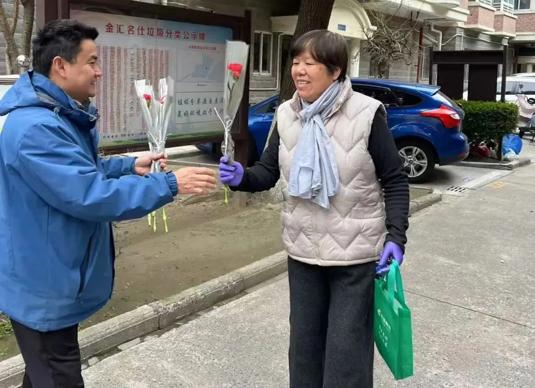 清晨,当第一缕阳光洒向小区,秦山物业的工作人员们早已忙碌起来。他们手捧一束束精心挑选、娇艳欲滴的康乃馨,守候在小区的主要出入口、单元大厅,甚至穿梭于园区的小径上,准备将这份饱含深情的节日礼物亲手送到每一位女性业主的手中。“女神节快乐”“祝您幸福安康”伴随着一声声温暖的问候,一朵朵美丽的鲜花被递到了业主们的手里。