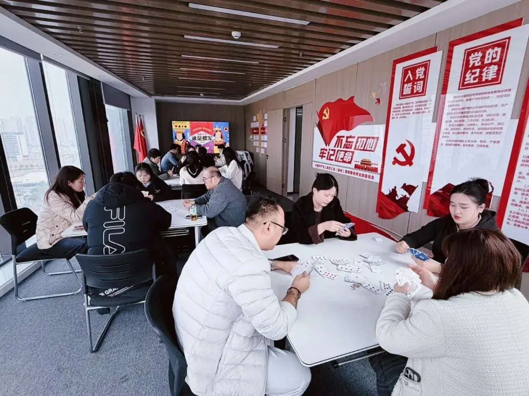 下午2点,掼蛋比赛正式拉开帷幕比赛采用双人搭档制,规则清晰、氛围热烈。赛场上,女神们与男同事们默契配合、沉着应战,每一次出牌都深思熟虑,每一轮配合都尽显默契;桌牌之间,既有运筹帷幄的沉稳,也有笑语盈盈的轻松。她们褪去工作中的严谨,展现出活泼灵动的一面,时而为好牌欢呼,时而为配合点赞,现场欢声笑语不断,暖意融融。