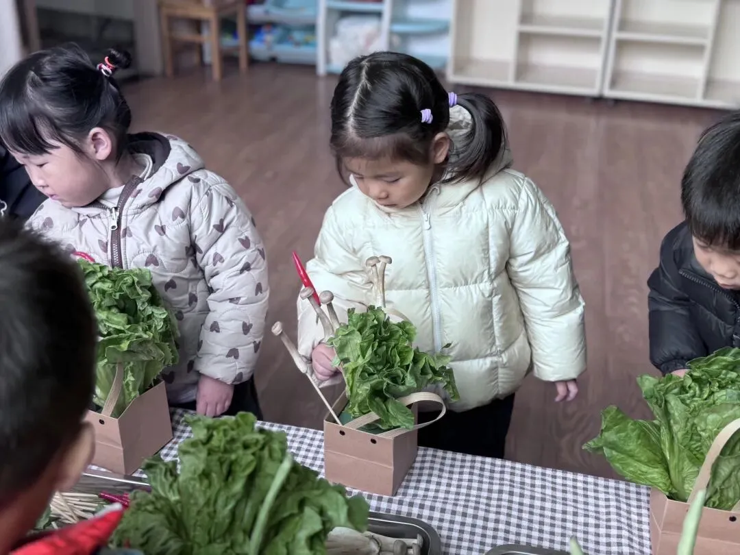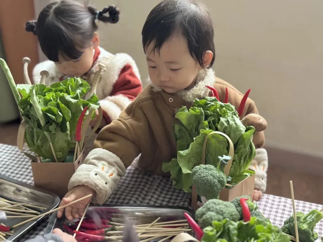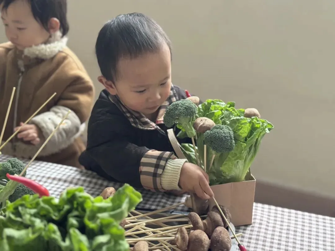 在老师温柔的引导下,小宝贝们一起认识了各种蔬菜以及蔬菜花束的做法