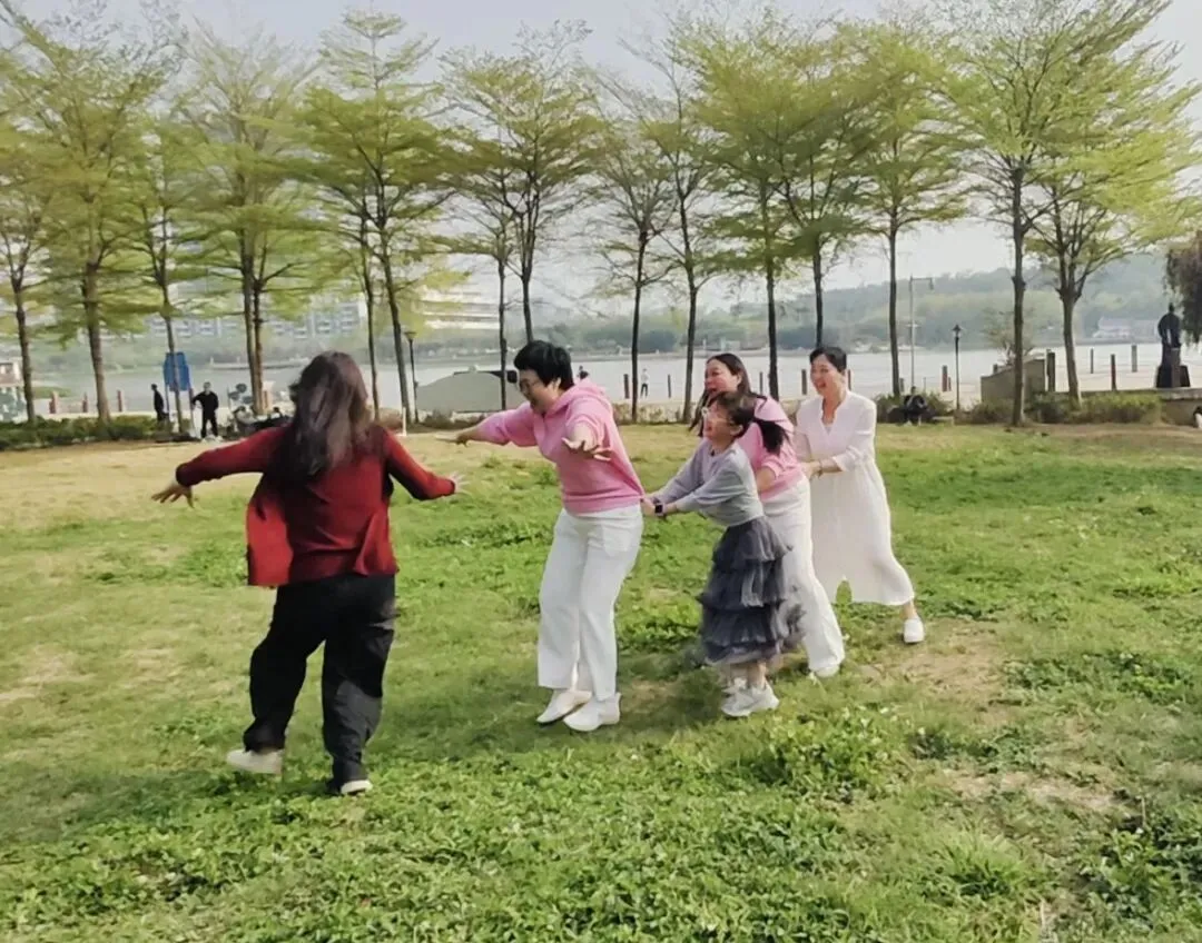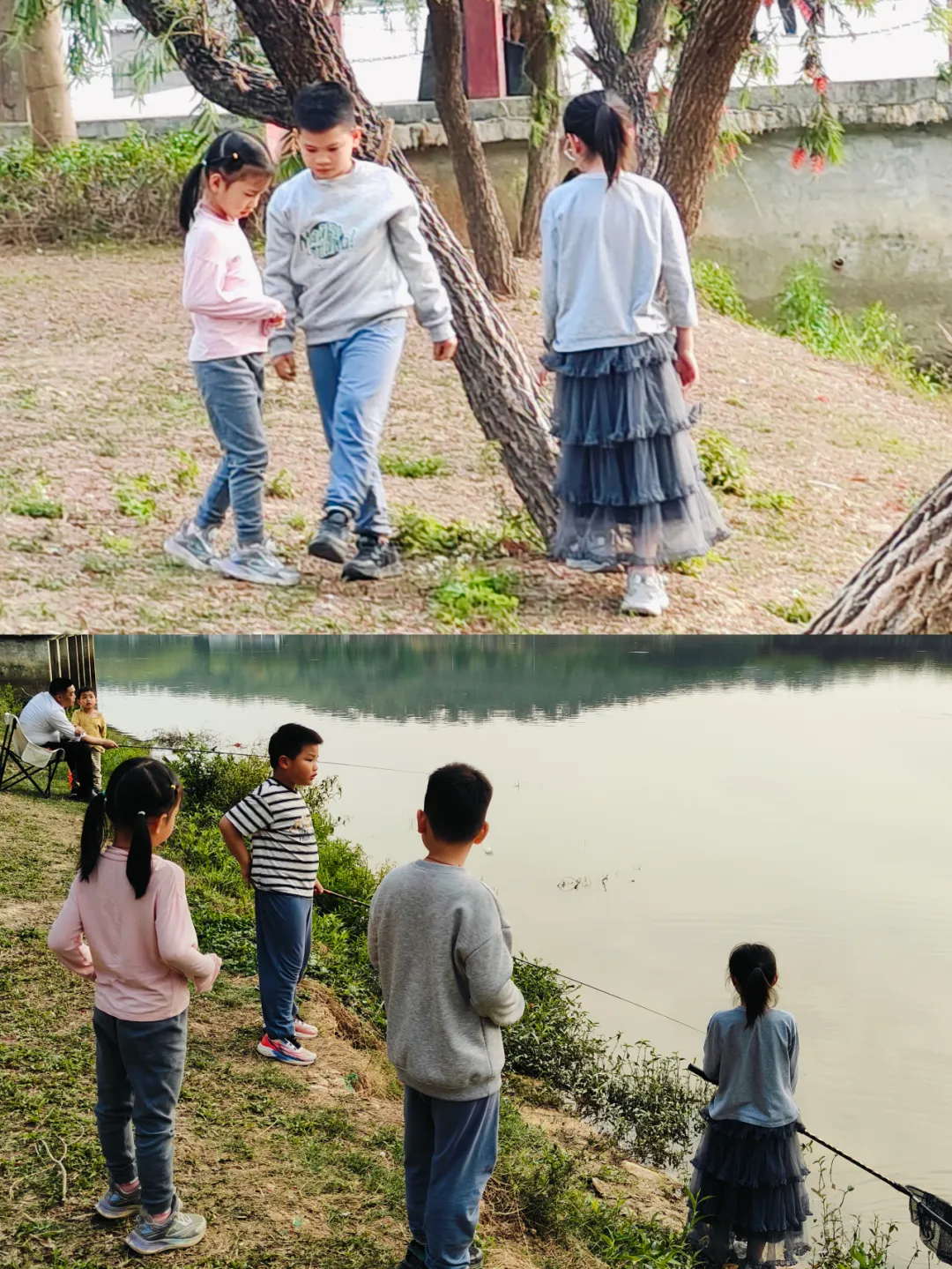 大家轮流一展歌喉,跟着旋律合唱,歌声在草坪上回荡,像春日的微风一样治愈人心。而孩子们则在一旁自由玩耍,专注地投入到钓鱼小游戏中,他们握着鱼竿和鱼网,眼睛亮晶晶地盯着水面,认真又可爱的模样,让整个画面都变得格外温馨。