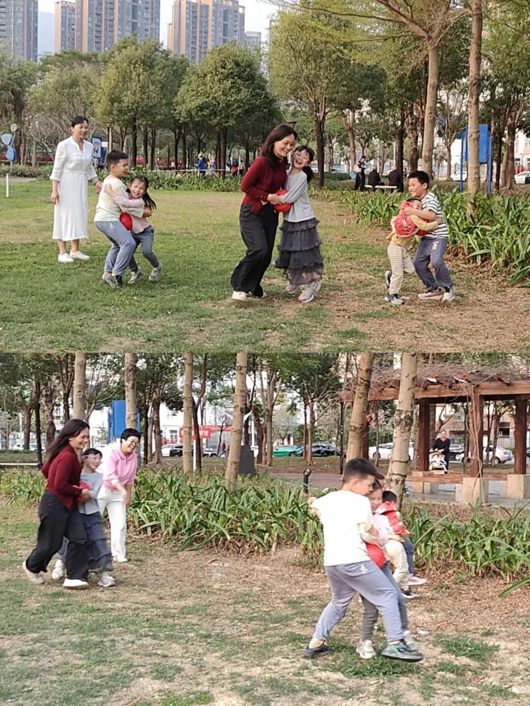 在老鹰捉小鸡的追逐里,孩子们的笑声清脆又响亮,妈妈们化身“鸡妈妈”,用臂膀守护着身后的小宝贝,每一次躲闪都充满了爱与力量。