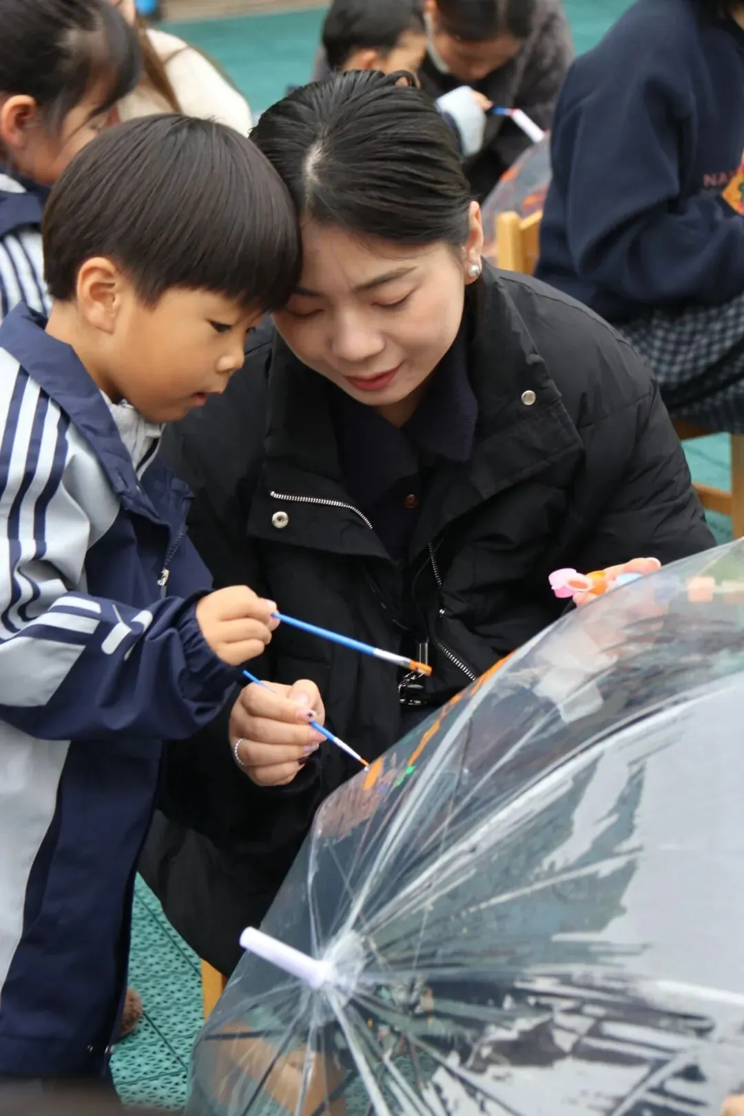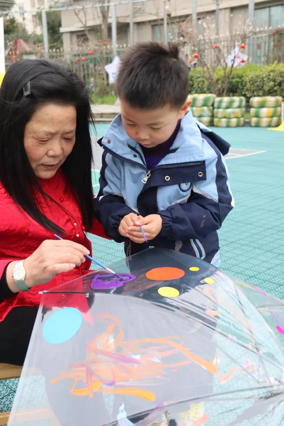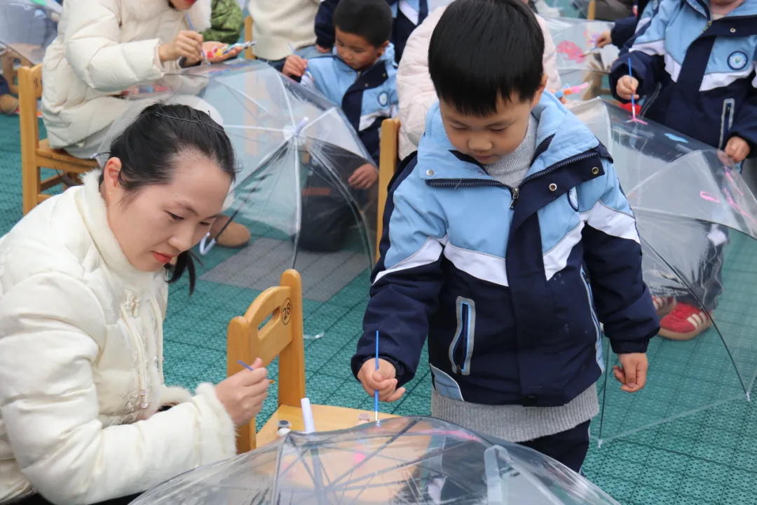 在伞面上彩绘美好图案,亲手打造属于妈妈的专属“爱心伞”。