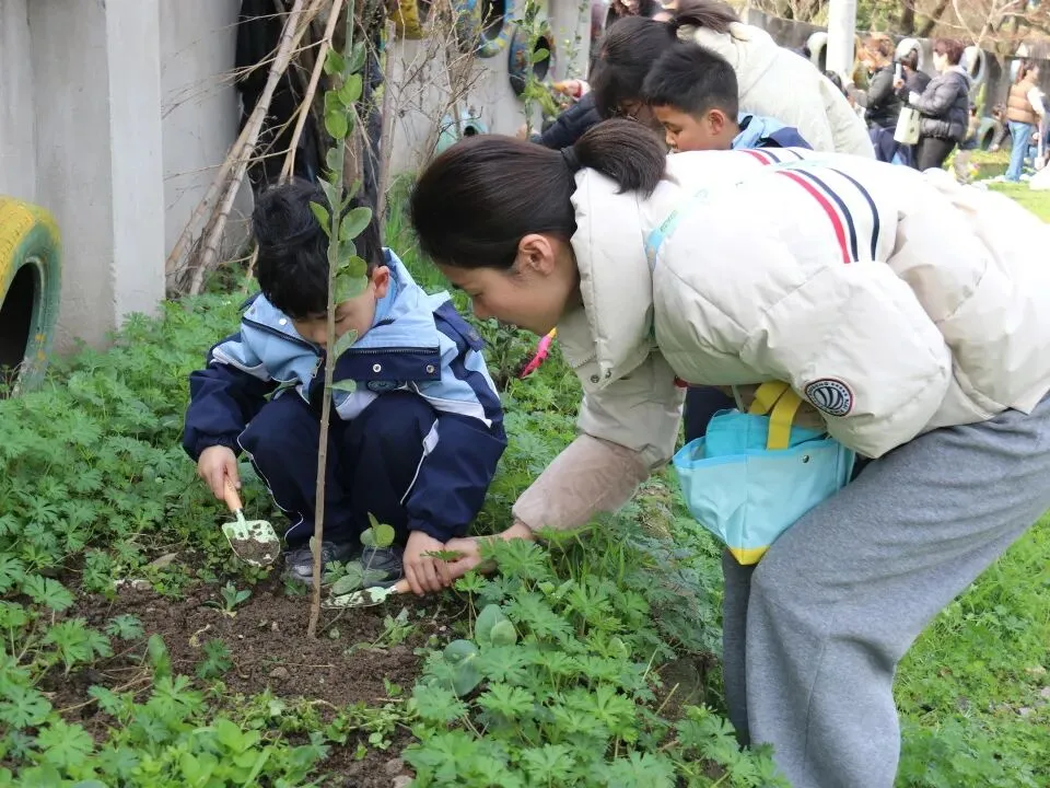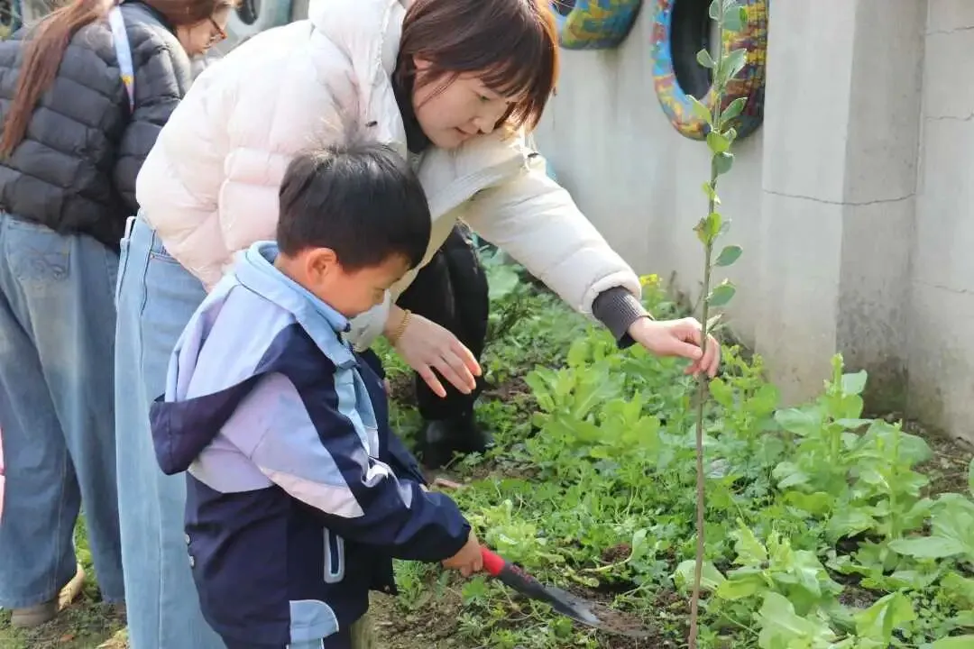 亲子携手栽种小树苗,在劳动中传递绿色希望,也让爱意与希望一同生根。