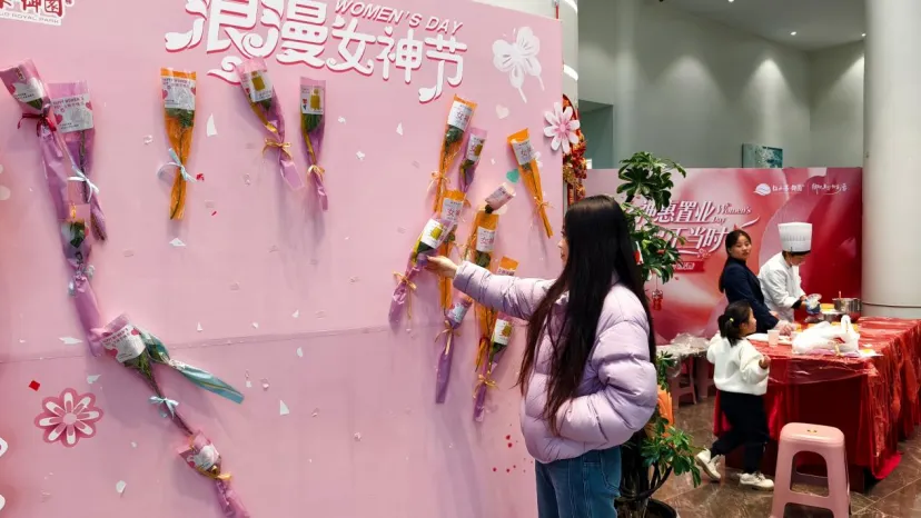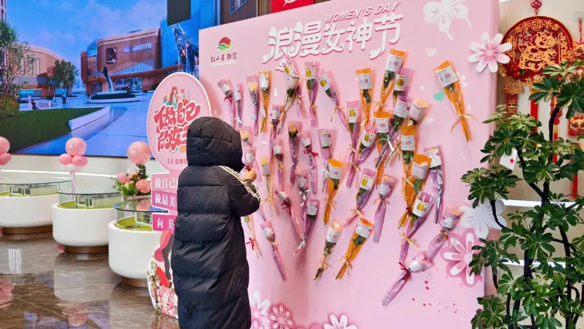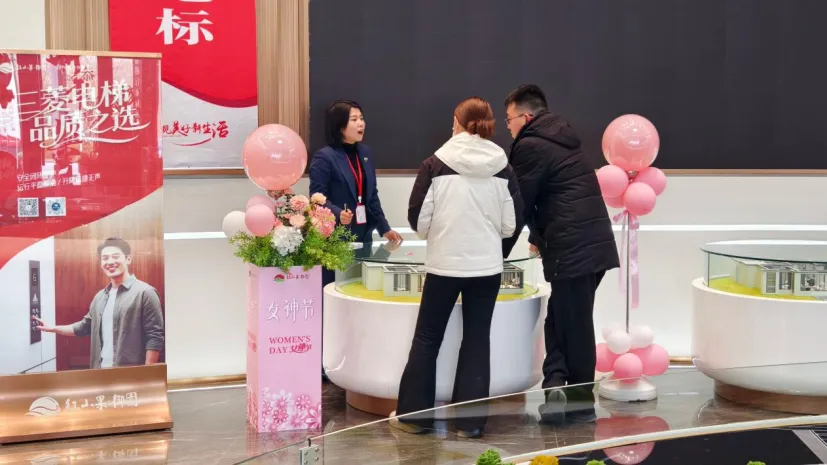 3月8日一早,红山果御园营销中心就已挤满了前来看房的女性顾客。每个人手中握着一支包装精美的玫瑰花——这是工作人员特意为女神们准备的“见面礼”。伴随一句真诚的“女神节快乐”,让每一位走进营销中心的女性朋友都被这份突如其来的温暖击中。