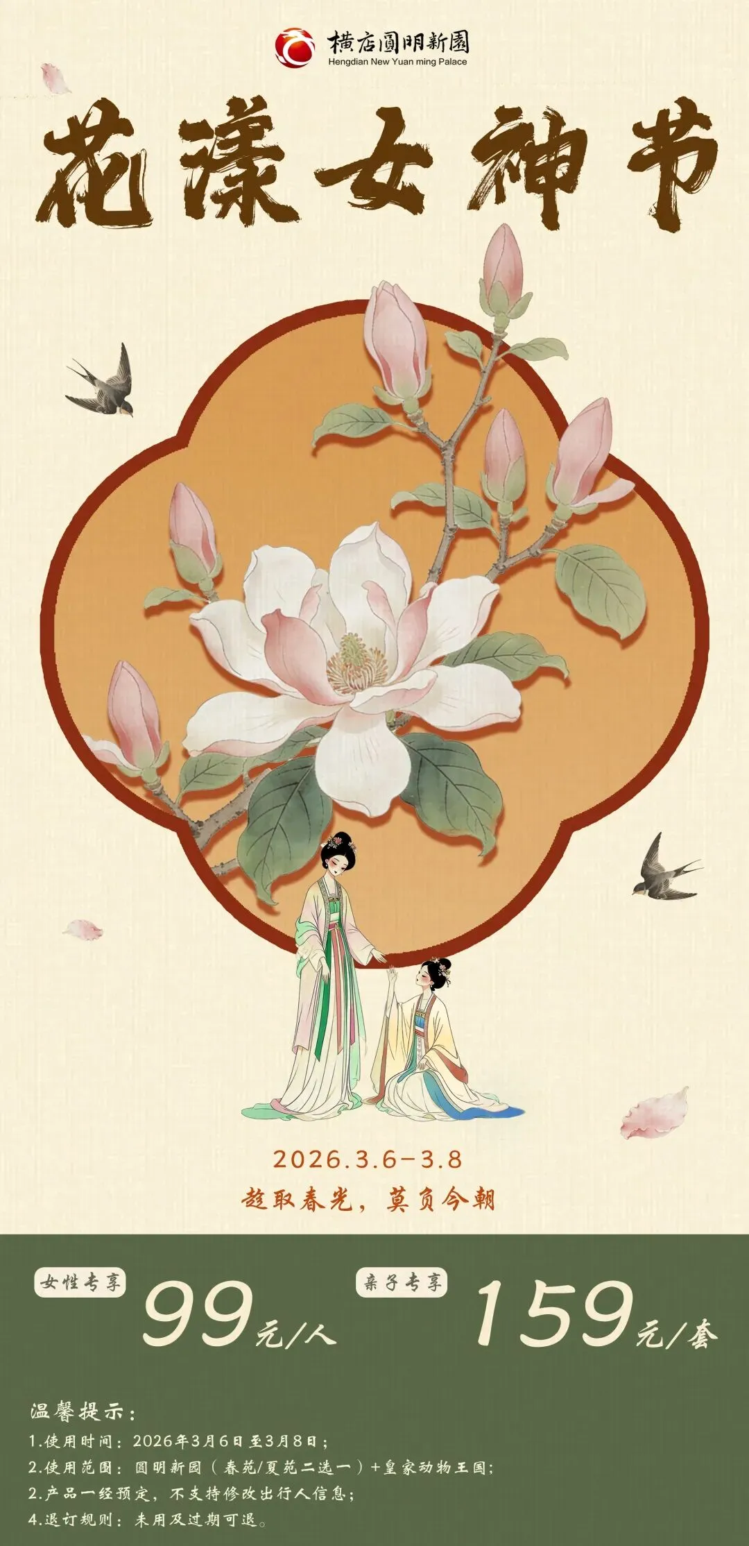 1、圆明新园(春苑/夏苑)+皇家动物王国女性专属票99元/套