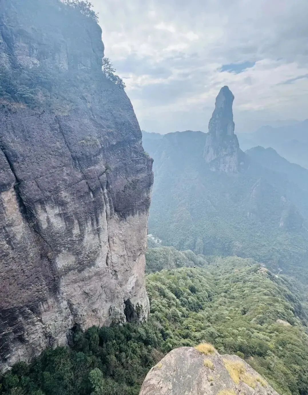 出站便是观音峰、佛祖峰、天柱峰群景环绕,壁立千仞,气势磅礴,完美对应徐霞客笔下的拔地摩霄。🛤️ 悬空栈道:行走悬崖之间神仙居最震撼的,莫过于这条挂在山崖上的悬空栈道。一侧绝壁千仞,一侧深谷幽幽。