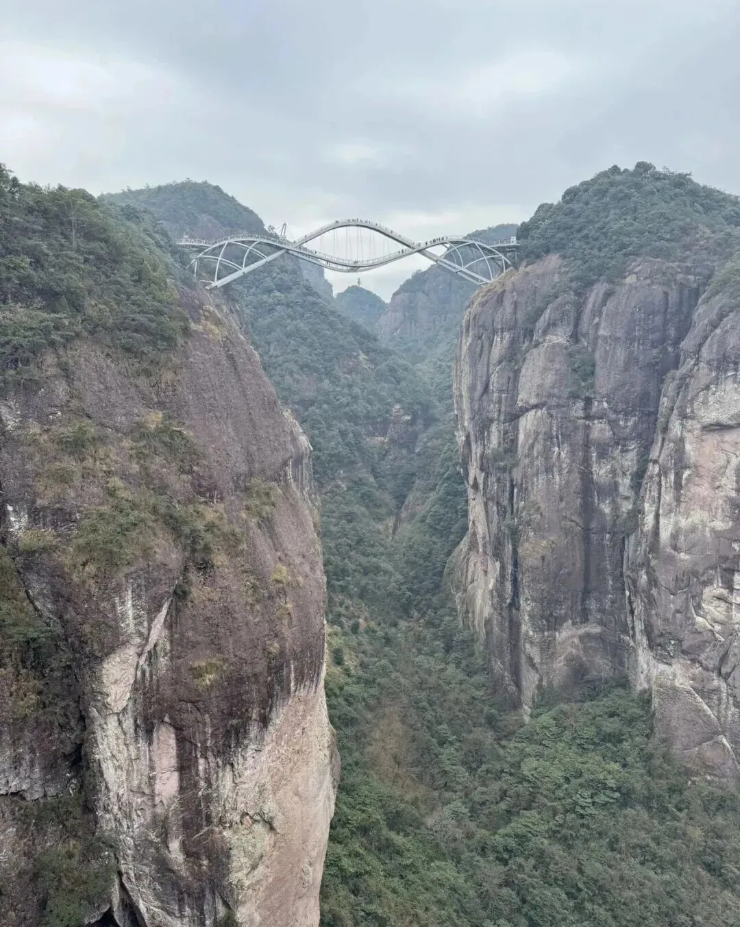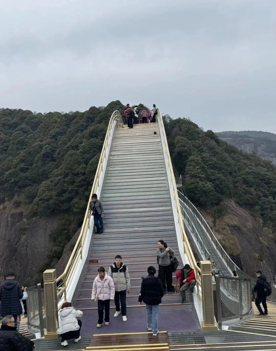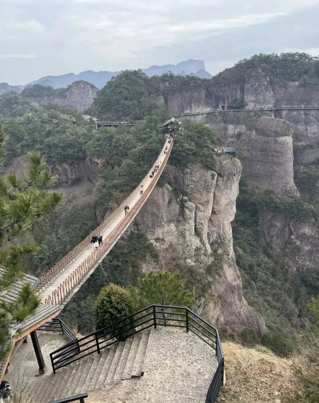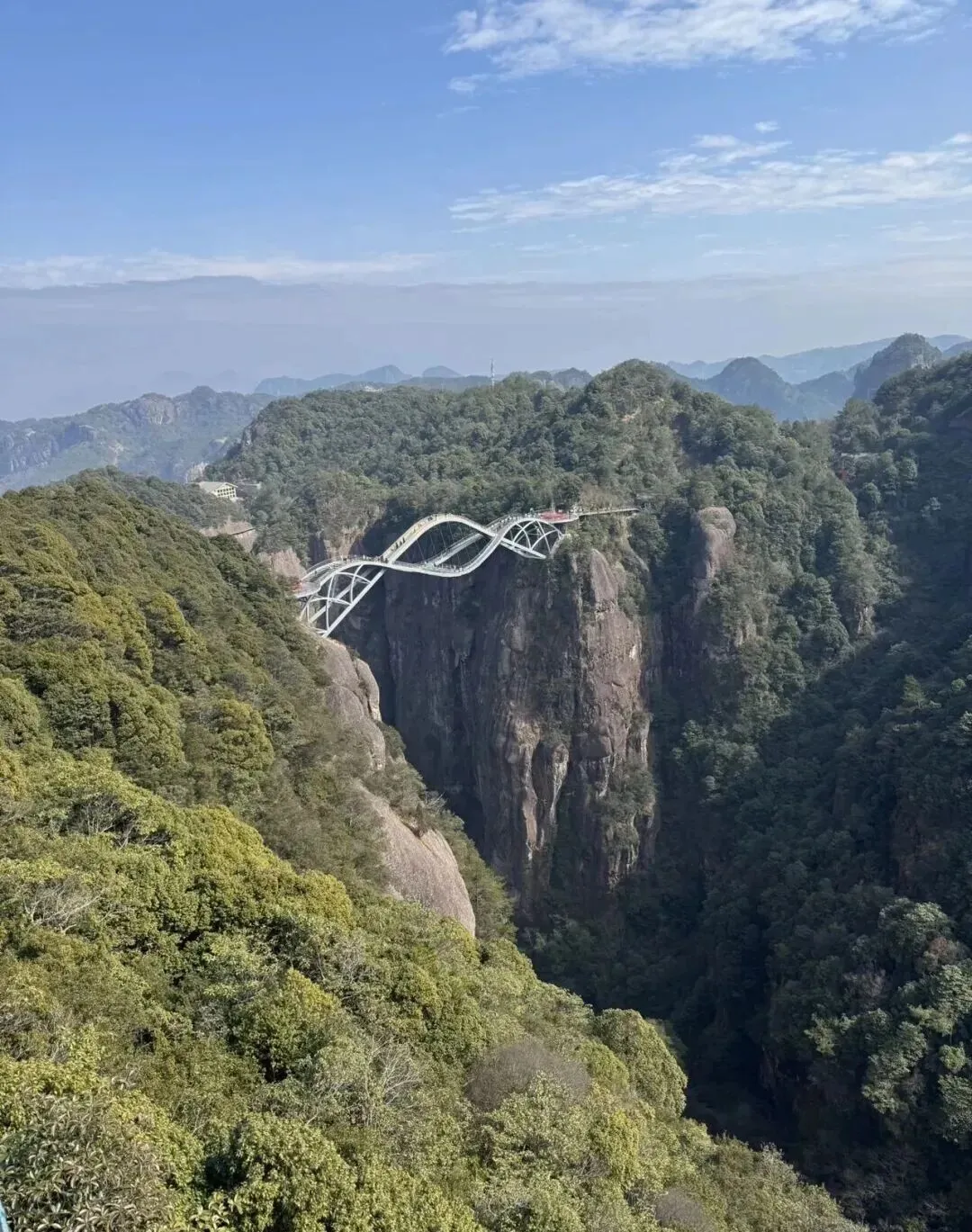 桥身如玉带悬空,漫步其上,脚下是山谷,眼前是群峰,云雾一绕,宛如走在天宫。