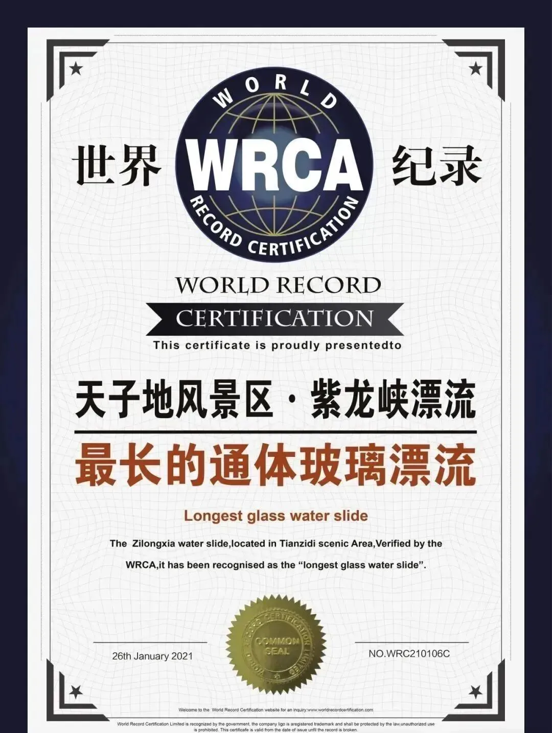 世界纪录“超长的通体玻璃漂流”。3.8公里多长,落差500多米,全程位于峡谷高空之上。水流急速、多个S急转弯和1080度旋转转盘。