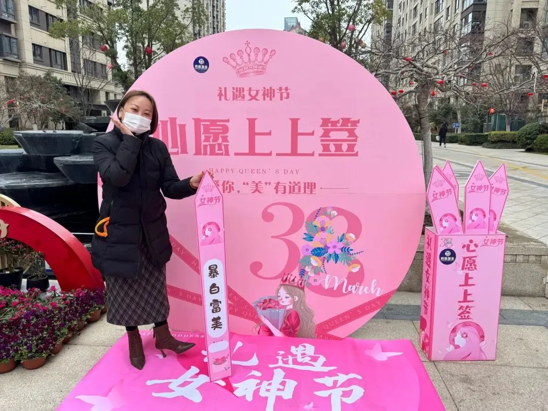 活动现场,小区东门的女神节主题打卡点已布置一新,营造出梦幻又治愈的氛围。不少女神早早来到现场,与闺蜜携手定格瞬间,镜头里满是自信从容的笑容。大家纷纷表示,这样的打卡点不仅让节日更有仪式感,也让邻里间的互动变得更加温馨。