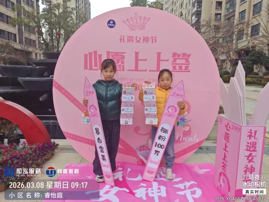 春风送暖,芳华绽放。为了向小区里每一位魅力非凡的女神致以最诚挚的敬意和祝福,同嘉物业睿怡庭服务中心精心筹备了一场温馨浪漫的“花开三月·女神驾到”的女神节主题活动,活动以专属打卡、心愿抽签、定制好礼等环节,为小区女性业主打造了一场充满仪式感与幸福感的节日盛宴,让每一位女神在春日里收获了专属的温暖与美好,与业主共赴春日之约。