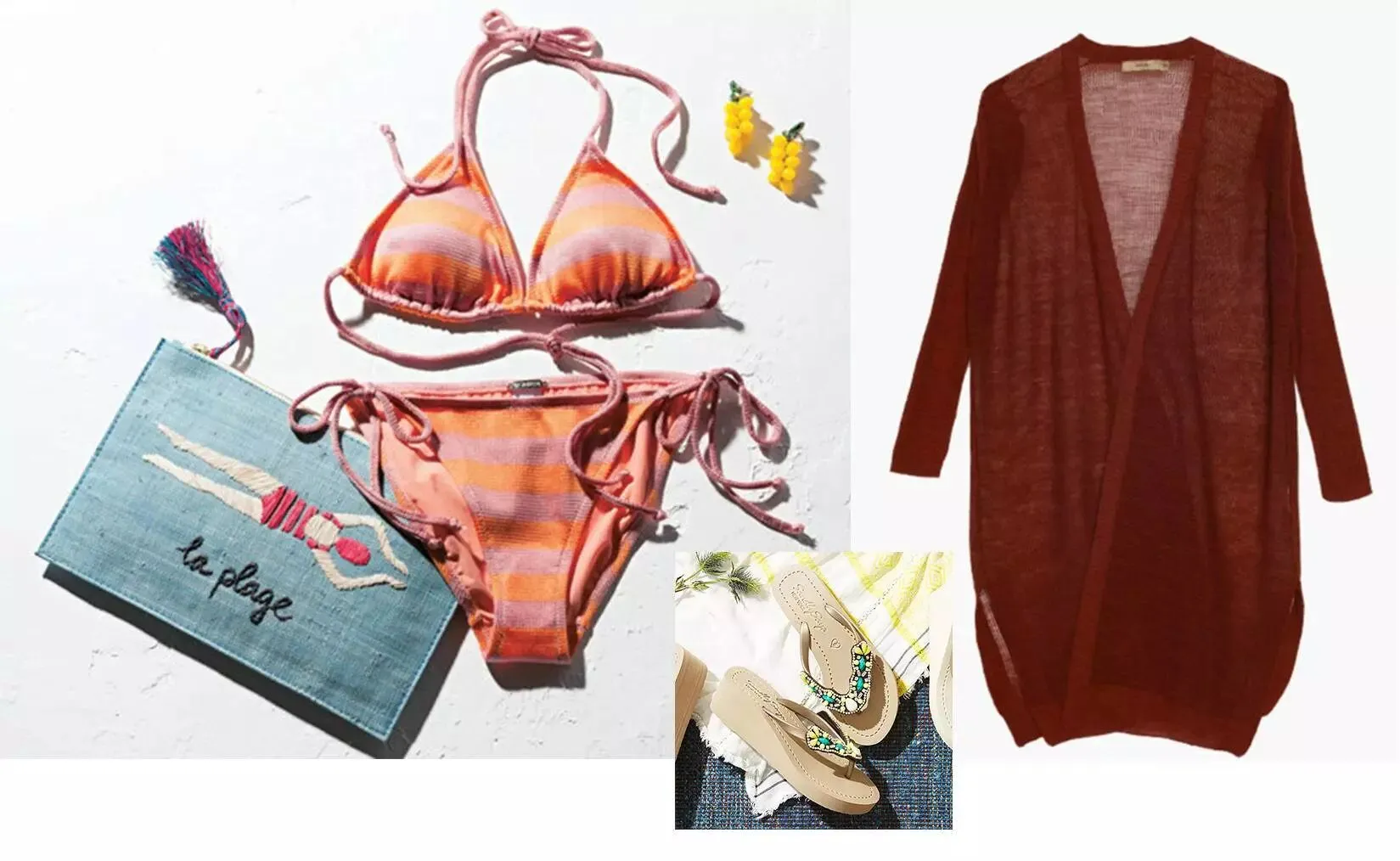 想要在前篇一律的泳装里脱颖而出,秘诀之一就在于泳衣和各种各样的小物的搭配。这些小物不仅实用,而且纷纷钟助你突围度假泳装拍摄大赛,时髦海边look随手可GET~