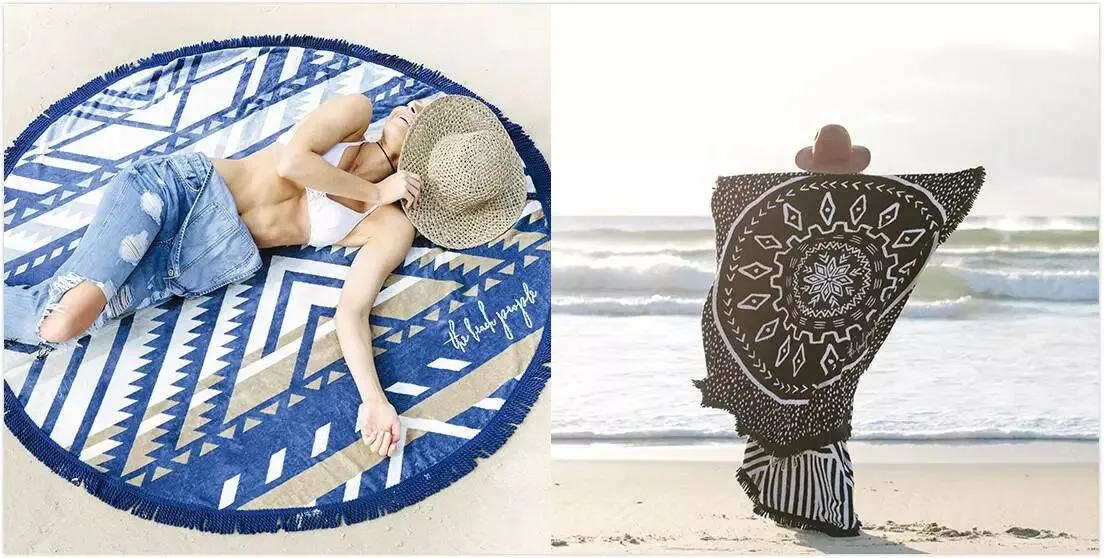 一张复古风情的沙滩毯在镜头下也腔调十足,而且可以作为丝巾披在身上也格外的飘逸。