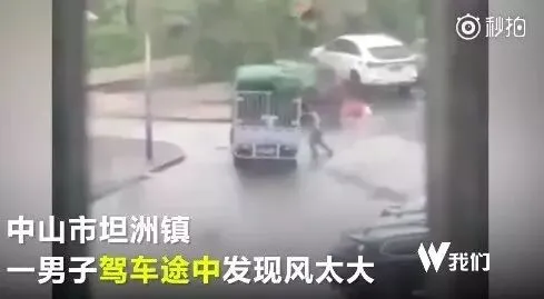23日,广东中山一辆小型货车在狂风中摇摇欲倒,司机下车尝试用身体支撑货车,但因风力太大,货车被吹翻将男子压在车身下,据坦洲镇政府消息,该男子已不幸遇难。
