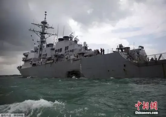 “麦凯恩”号导弹驱逐舰的受损部位非常明显。