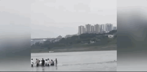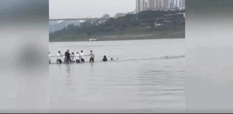 数名热心市民跳入江中开展救援