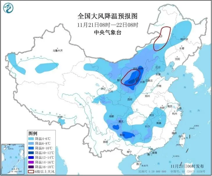西北地区东部、华北北部和西部、西南地区东部、江南至华南北部等地先后有4~8℃降温,局地降温10℃以上。