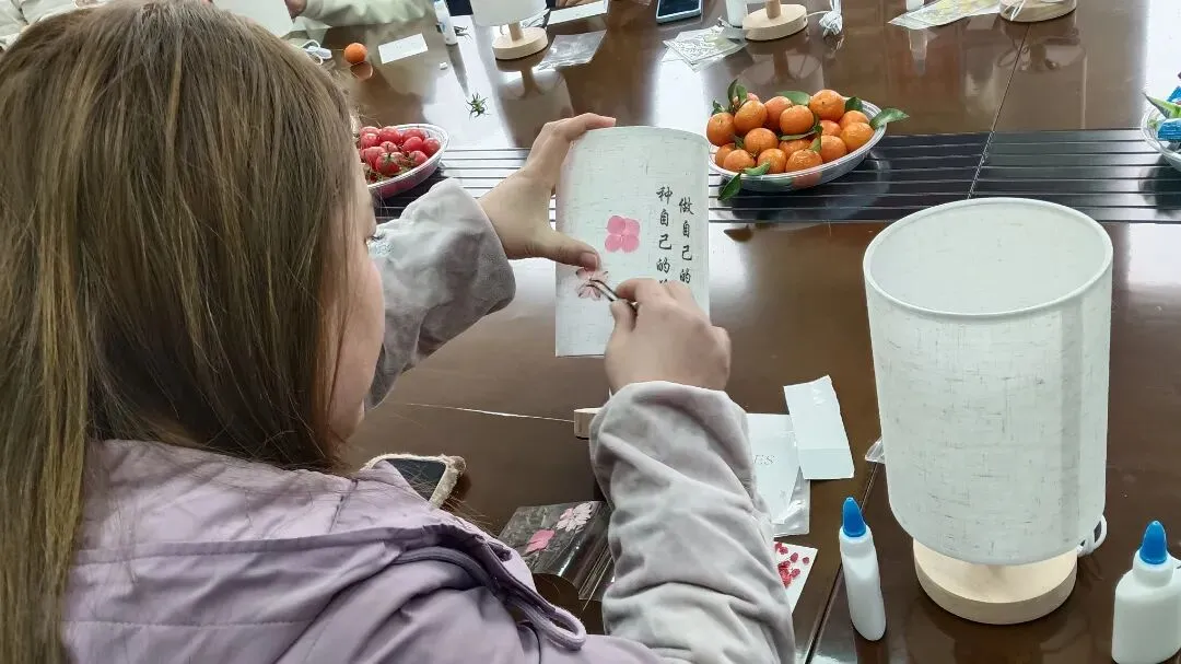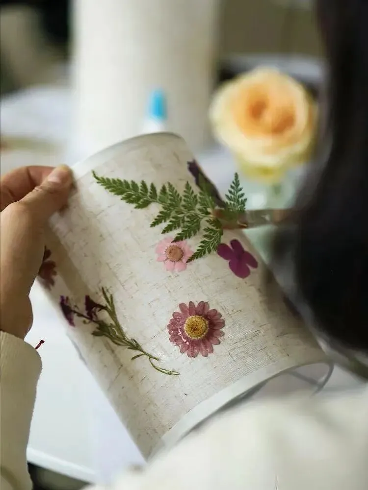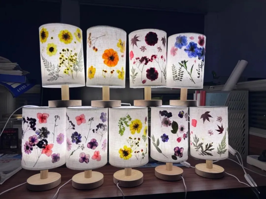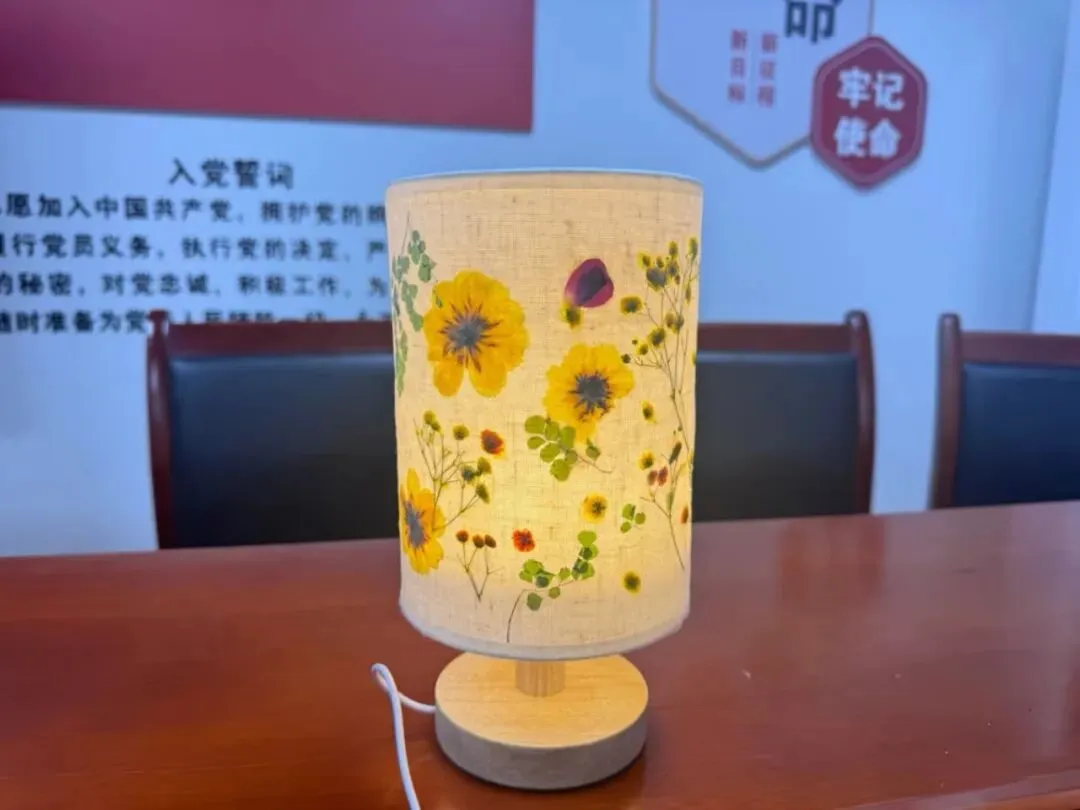 经过认真制作,一盏盏独具匠心的压花台灯陆续成型。柔和的灯光透过精美的花影灯罩缓缓透出,浪漫雅致,温馨治愈。大家手捧亲手完成的作品,脸上洋溢着满满的成就感与喜悦。