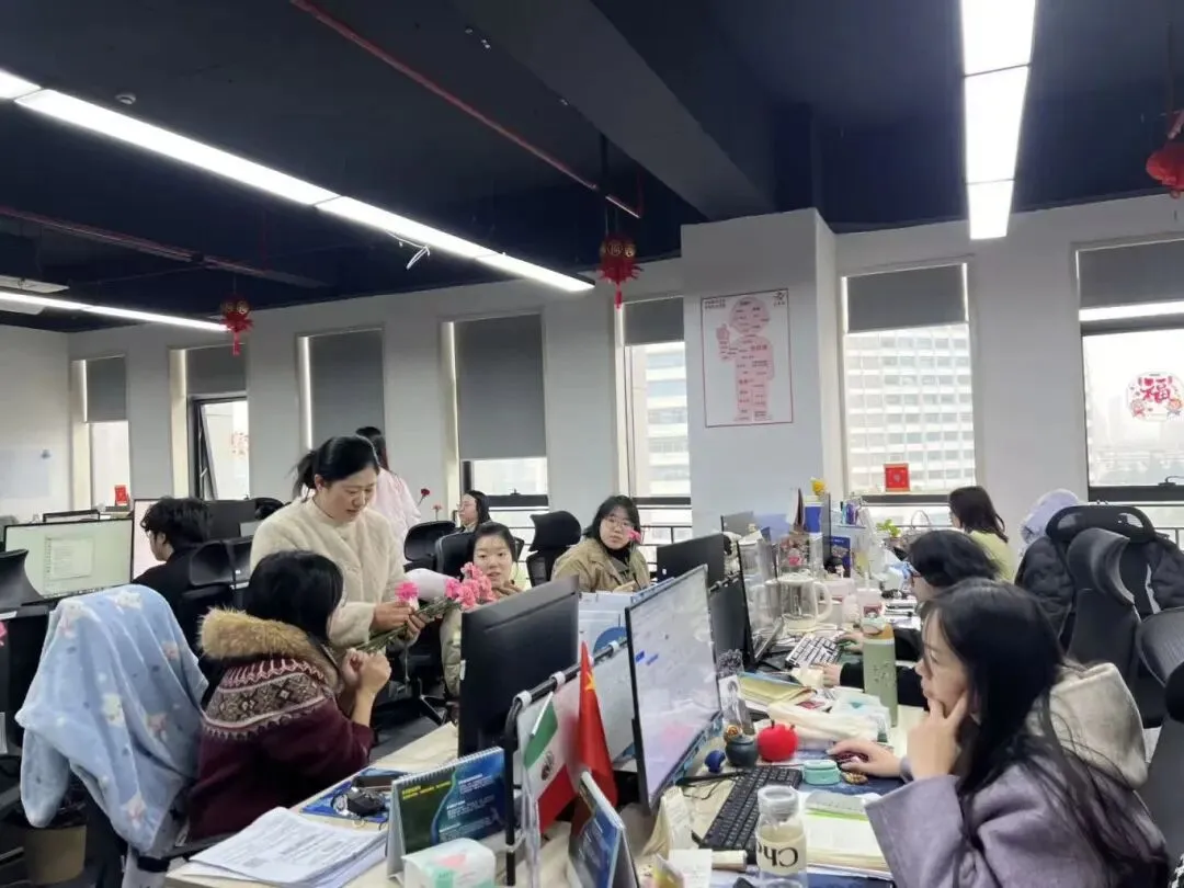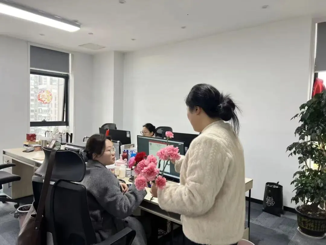 早上8:50,办公楼里便洋溢着花香与笑意。质惠家为每一位女同事准备了一朵芬芳的康乃馨,由人力资源部亲手送到她们手中。
