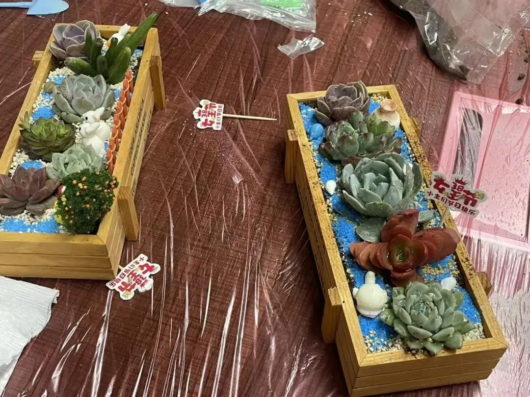 下午17:30,活动进入第二篇章——多肉植物种植DIY。女同事们陆续放下手中的工作,围坐在一起,亲手栽种属于自己的小绿植。培土、种植、搭配、点缀……每个人都沉浸在创作的专注与乐趣中。有人偏爱极简风,有人钟情层次感;有人种下第一盆绿植,有人已是“多肉达人”。活动现场笑声不断,创意流动。这不止是一场手工课,更是一次非正式的沟通与连接。跨部门的女同胞们在协作中熟络,在交流中碰撞灵感。审美被激发,创意被看见,团队的凝聚力在轻松愉悦的氛围中悄然生长。
