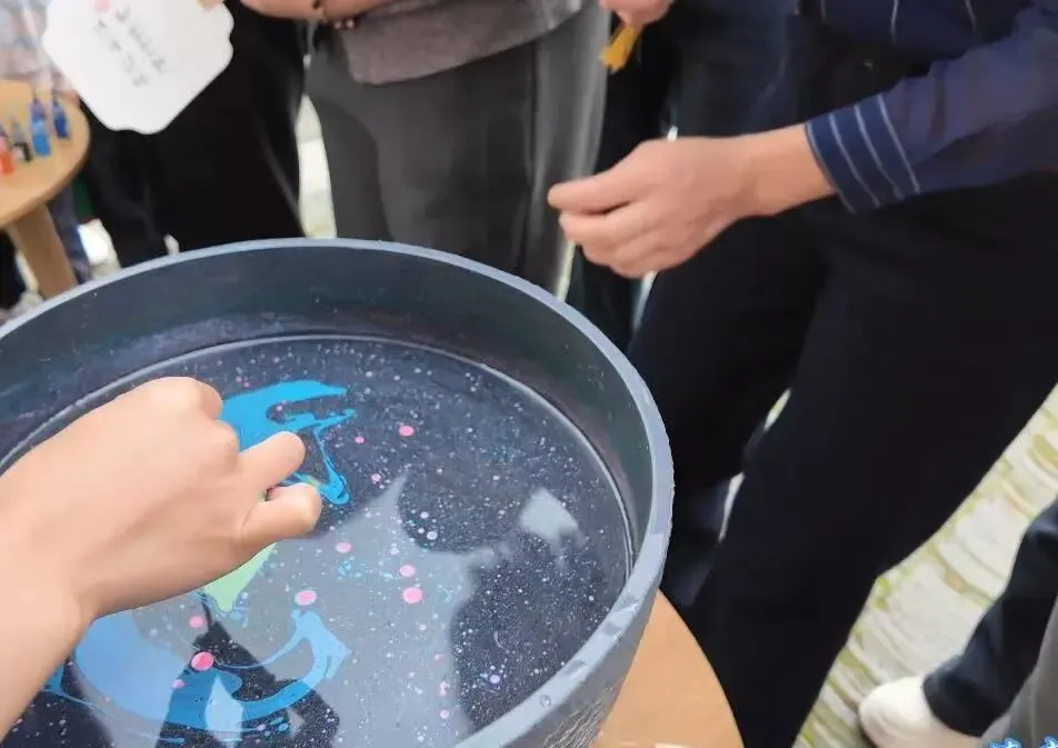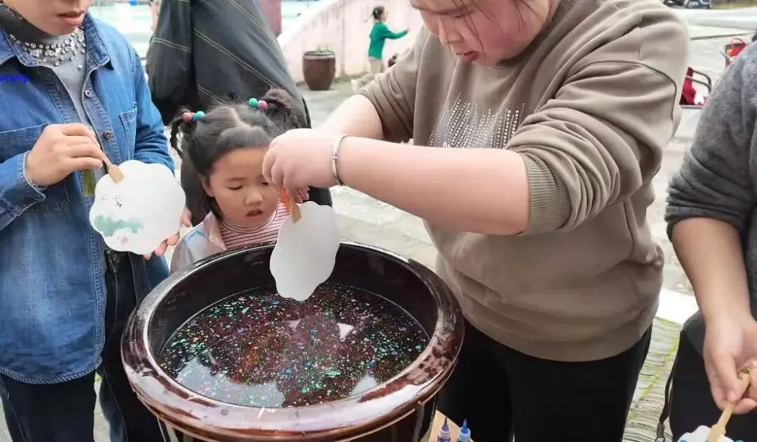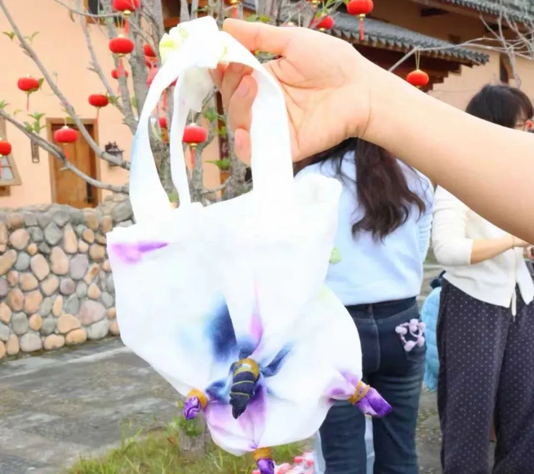 扎染体验区,大家尽情发挥创意,捆扎、浸染、晾晒,独一无二的扎染作品新鲜出炉。