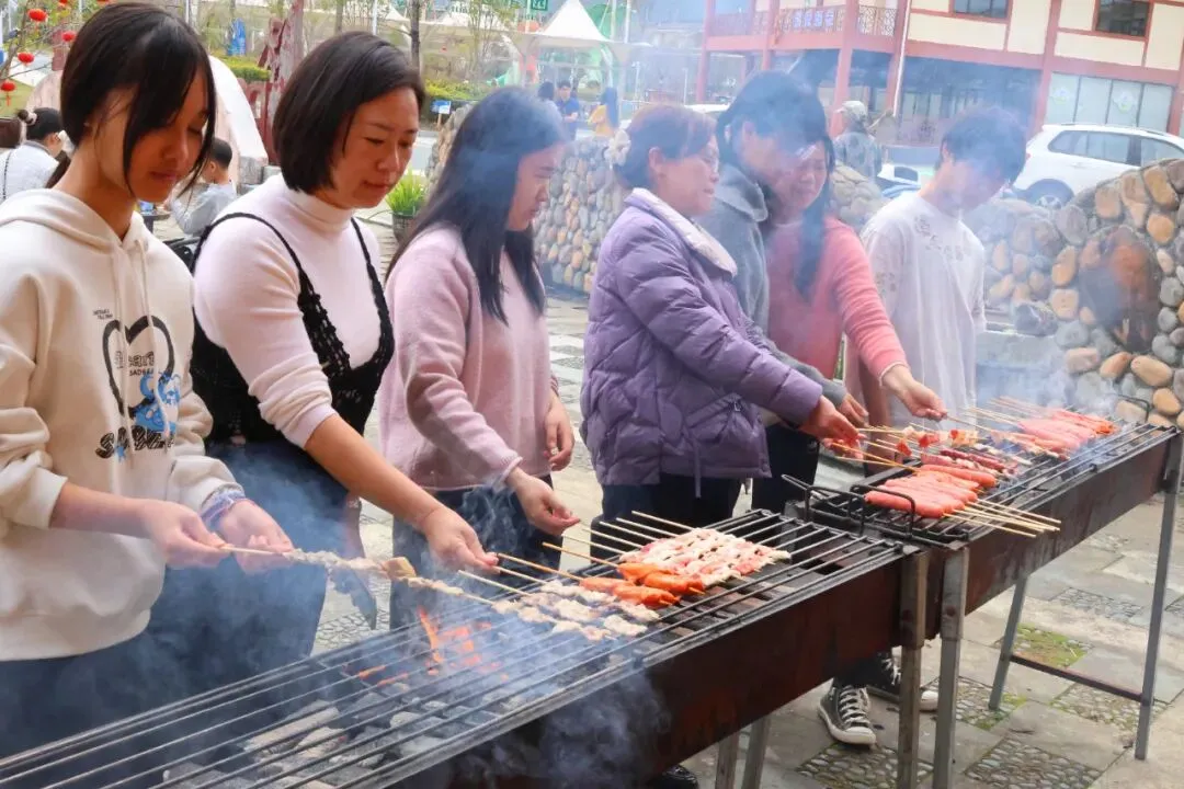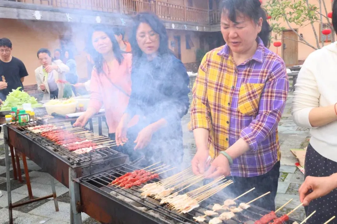 节日当天,女神们齐聚,热闹的碳火吹起袅袅炊烟、大家分工协作,在炊烟与欢笑中,品尝烧烤风味。