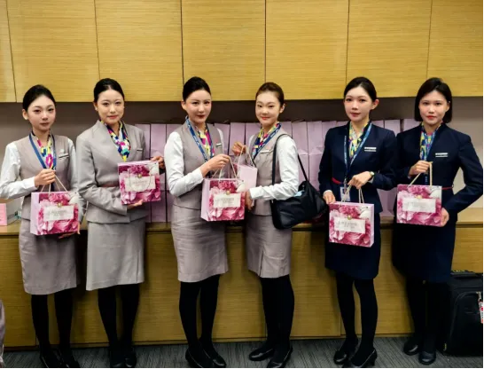 晨光破晓,航前准备大厅已暖意氤氲。部门带着对全体女性员工的深切关怀,早早等候在现场,亲手将一份份精致雅致的节日礼品,递到每一位即将执飞的乘务员手中。礼盒里的心意,藏着对“空中玫瑰”日夜坚守的认可,也载着对她们飞行平安的牵挂。“女神节快乐,带着这份宠爱,安心飞行、起落平安!”一句句暖心叮嘱,一个个温柔握手,将航前的忙碌与疲惫轻轻化解,让春日的准备区,盛满家一般的温情。