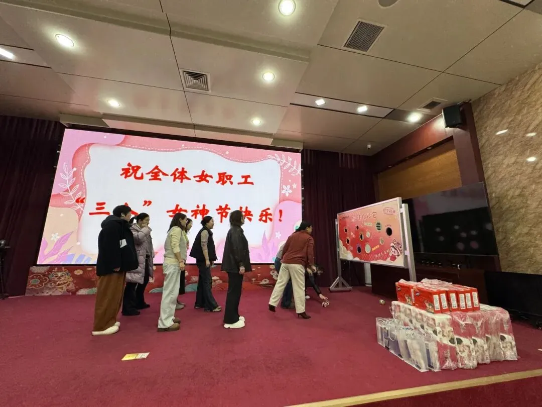 如果说观影是一场心灵的洗礼,那么“趣味投沙包”活动则是一场欢乐的释放。办公楼三楼综合会议室里,加油声、喝彩声此起彼伏、热闹非凡,正是女职工们参加趣味游戏传来的欢呼声。活动精心设置沙包精准投掷、积分闯关等环节,既考验技巧,又充满趣味。女职工们个个摩拳擦掌、跃跃欲试。瞄准、投掷、得分……每一个精彩瞬间都引来阵阵掌声。