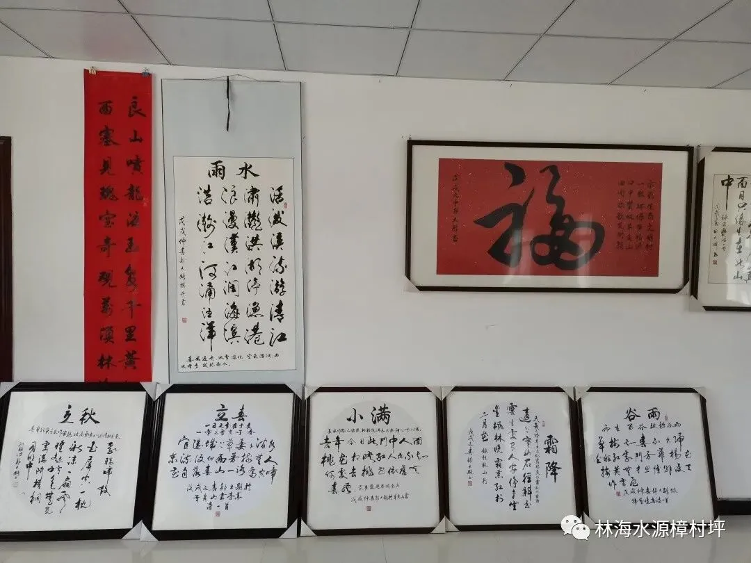走访过程中,团队成员还发现,家家户户都有一块特殊的标牌,“家风牌”。重视精神文明建设、重视乡风与基层治理,王书记将理念都付诸实践。村委会还设有文化工作室,其中陈列着著名书法家郭大魁老师的众多书法作品,更有全本手写的族谱留存。物质发展与精神建设两不误,这是羊角山村实现乡村振兴的一大法宝。