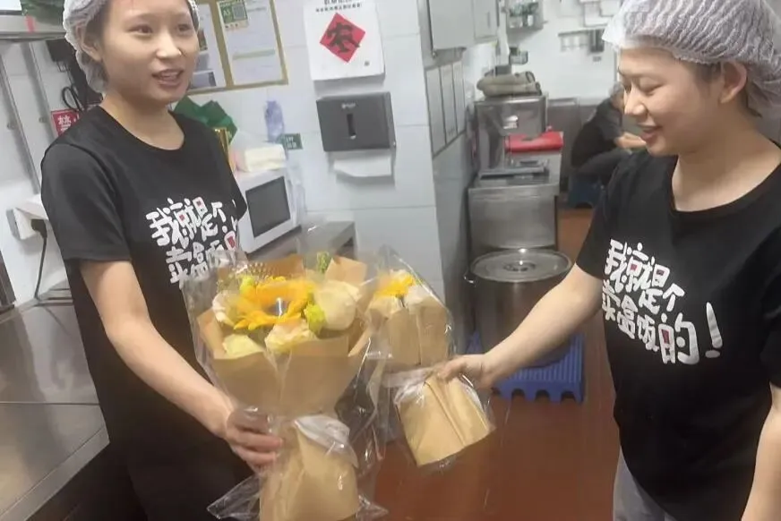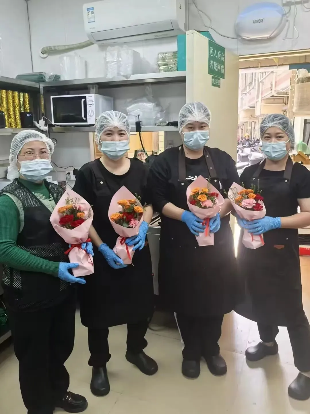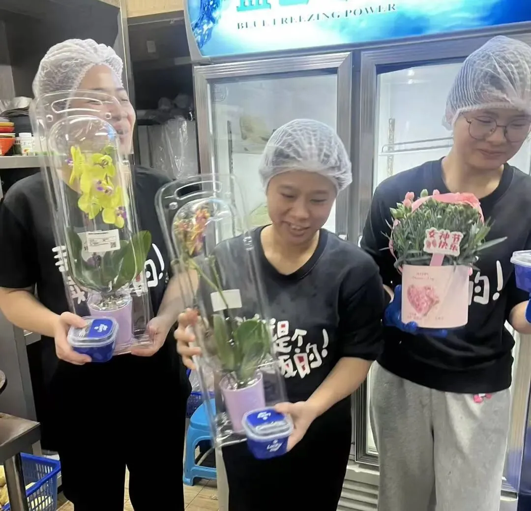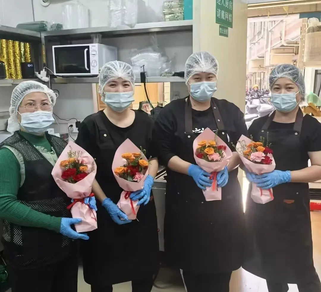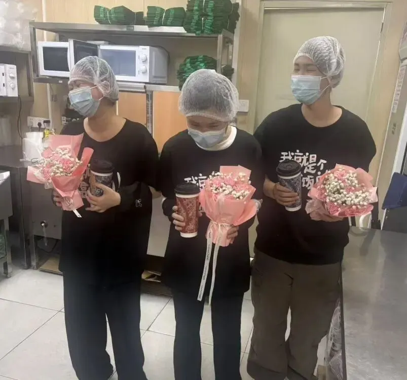 照片里,有手中鲜花的浪漫,有分享奶茶的快乐,更有大家对工作最真诚的态度。