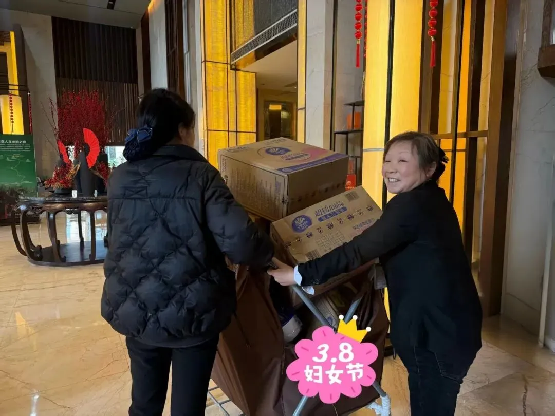 节日前夕,酒店为每一位女员工准备了专属福利。不是什么贵重的东西,是一份心意,一声“辛苦了”,一句“节日快乐”。