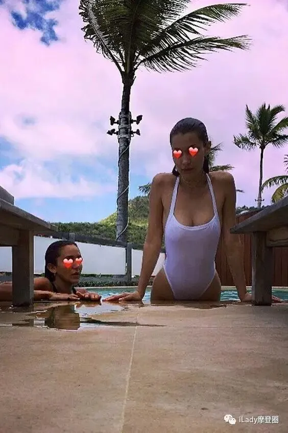 Bella Hadid的泳衣也是白色款,胸口稍加设计突显身材,来自Melissa Obadash。