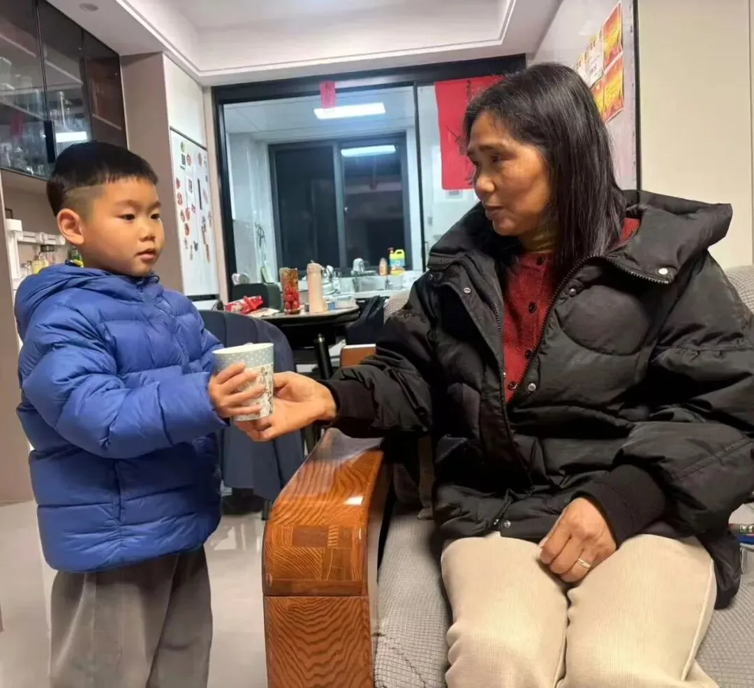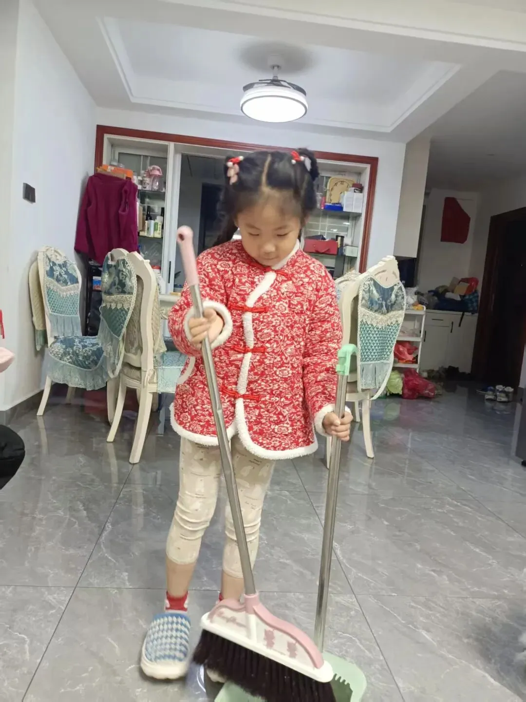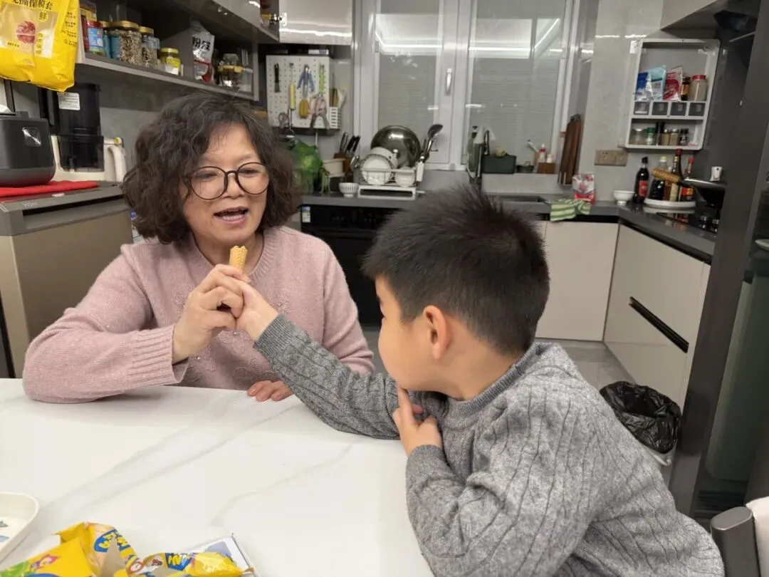 回到家里,为妈妈、奶奶端上一杯温水、捶一捶背、盛一次饭、洗一次碗,通过力所能及的家务,诉说着藏在心底的爱。