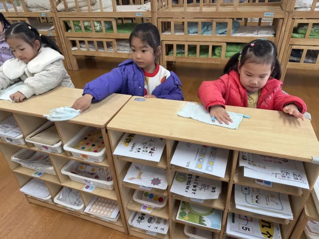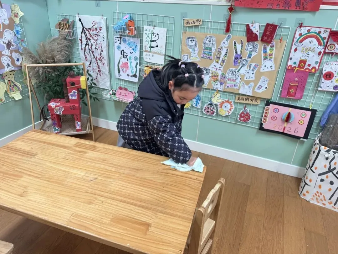 除了制作礼物,宝贝们还化身“劳动小能手”。在幼儿园里,帮老师准备碗筷、擦桌子、整理玩具,用小小的行动分担老师的辛劳。