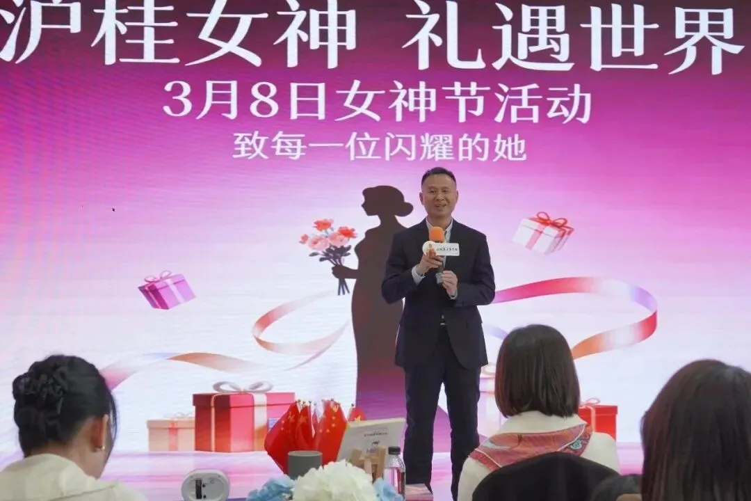 随后,上海市广西商会副会长李衡雄先生上台致辞。他以简洁而真诚的语言,向在座的女神们表达了节日的祝福。他提到,女性在社会和家庭中扮演着多重角色,尤其在商界,女性企业家以其独特的细腻、坚韧和智慧,成为推动经济发展的重要力量。