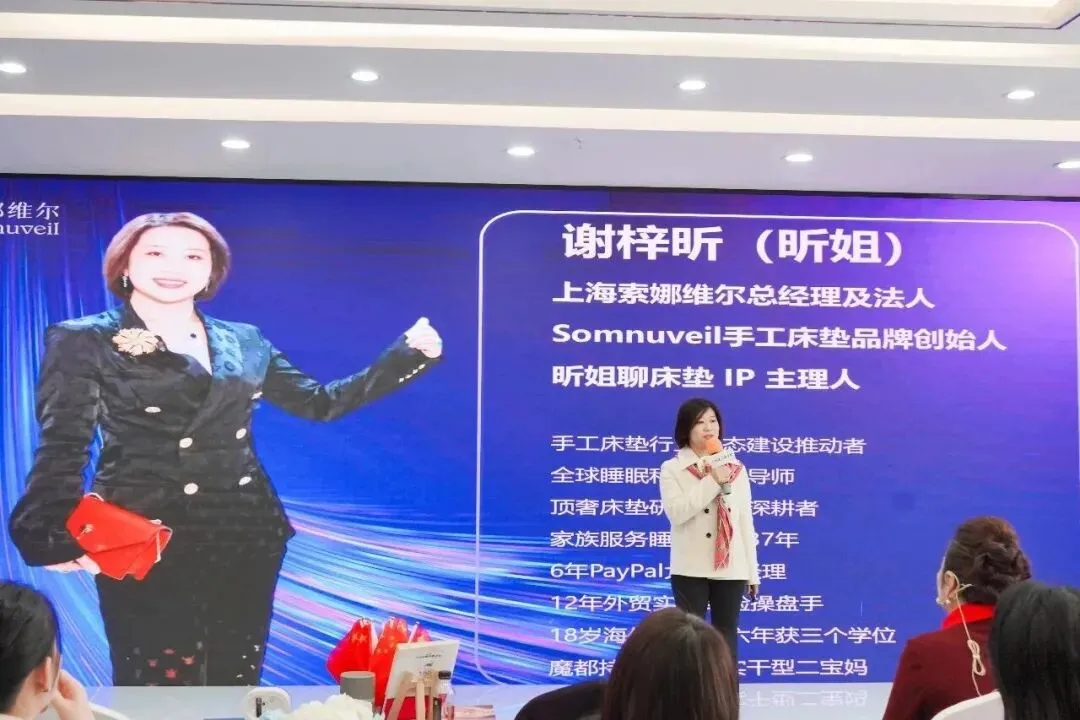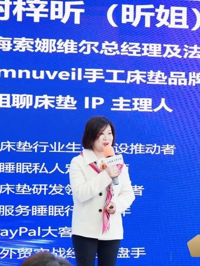 她的个人标签令人印象深刻:家族服务睡眠行业37年、6年PayPal大客户经理、12年外贸实战经验操盘手、18岁海外求学六年获三个学位、魔都持续创业的实干型二宝妈……这些经历让她在女性创业者中独树一帜。