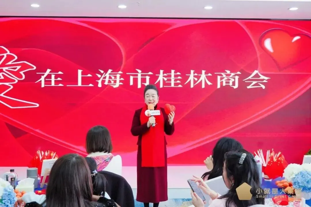 上海市桂林商会会长李翠凤女士随后上台讲话。她首先感谢广西商会的携手合作,感谢小就是大集团提供的高品质场地,也感谢昕姐和高老师的精彩分享。