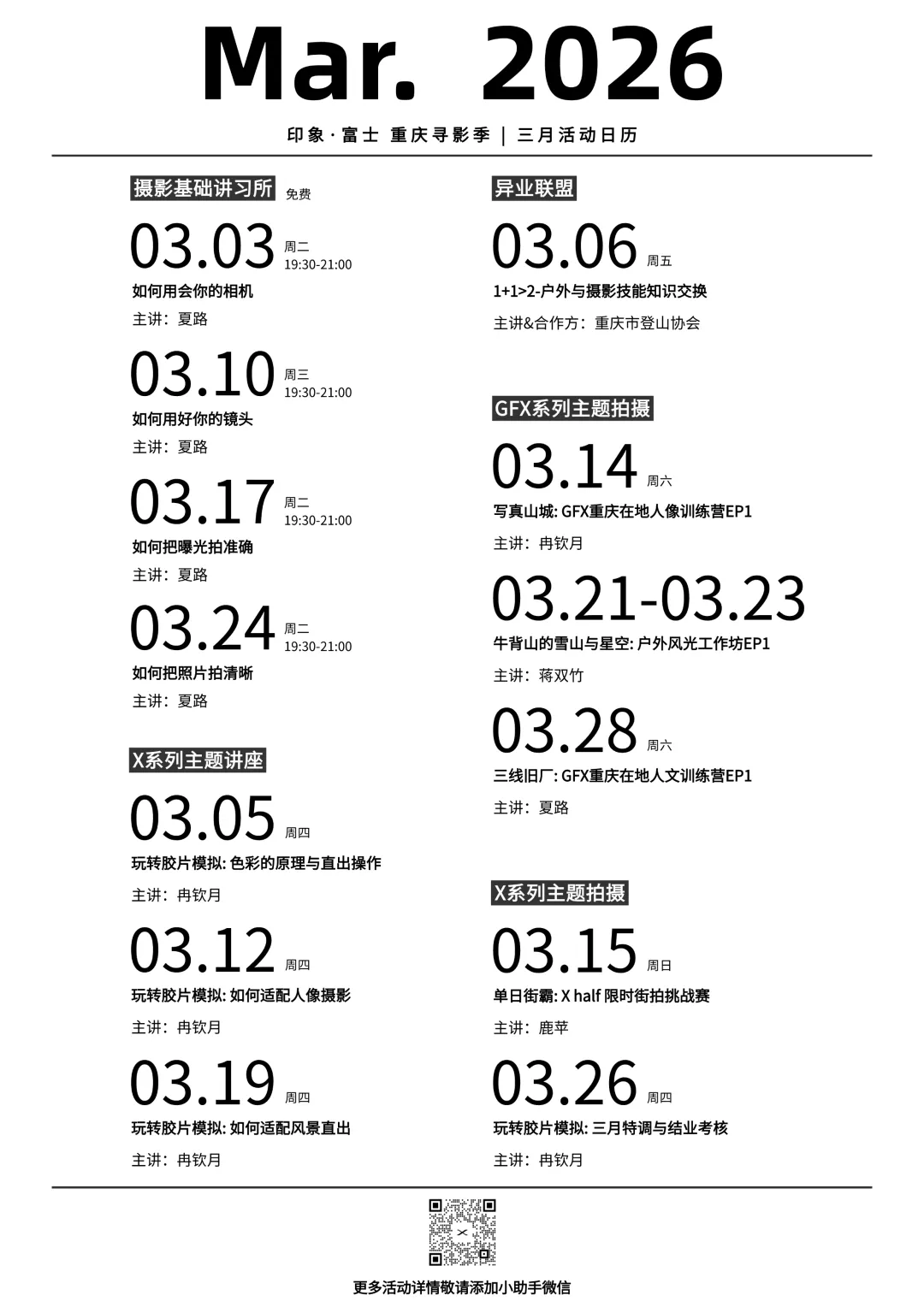 「印象·富士 重庆寻影季」三月活动日历