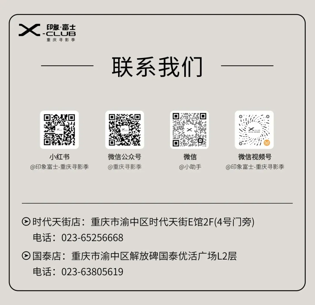 本次活动优秀作品更有机会入选富士胶片影像X Club本年度大型摄影展,在千平场地高质量震撼展出。这次,让我们立足重庆人文地标,感受中画幅极致画质,诚邀重庆摄影爱好者共赴创作之约。
