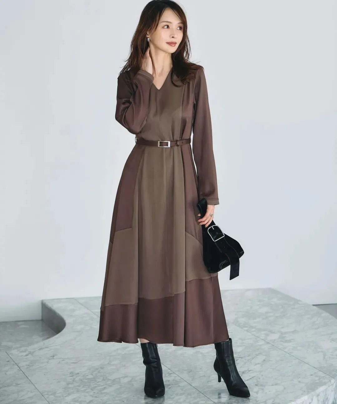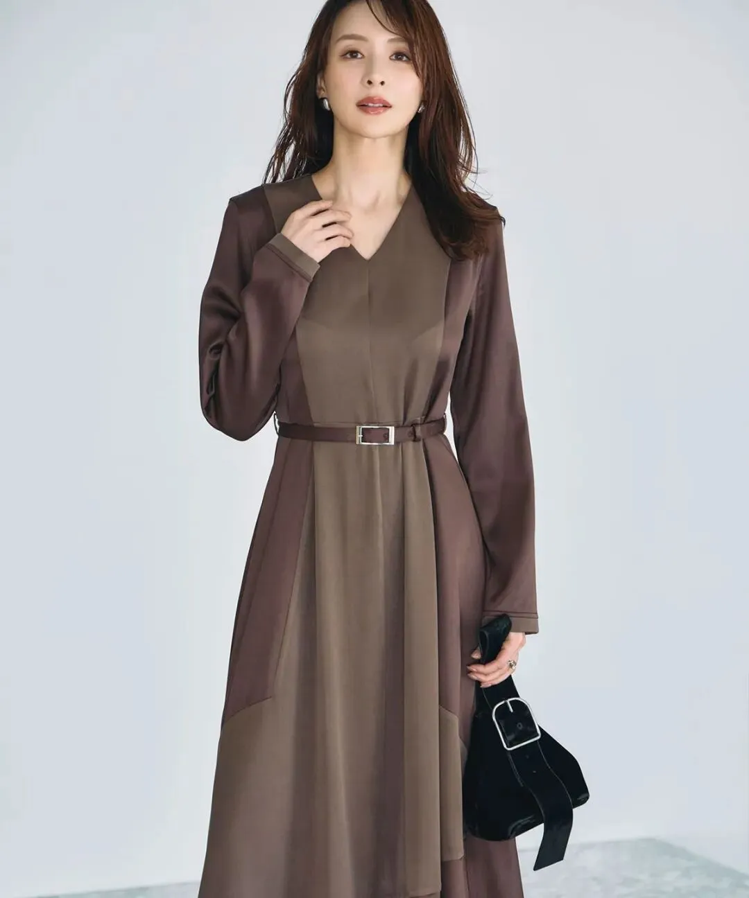 温润典雅的棕色连衣裙,彰显深厚底蕴与岁月沉淀。东方简奢风的造型,诉说高级隽永气质。