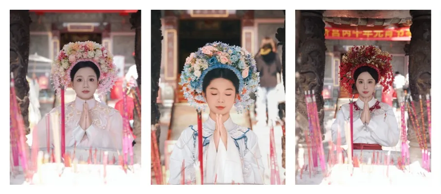 蚵壳厝古巷、红墙古厝、顺济宫前,每一帧都是中式美学大片,每一抹笑靥都比繁花更动人。