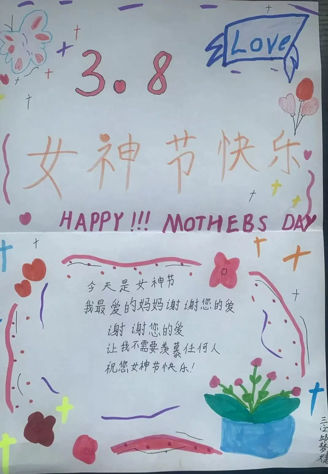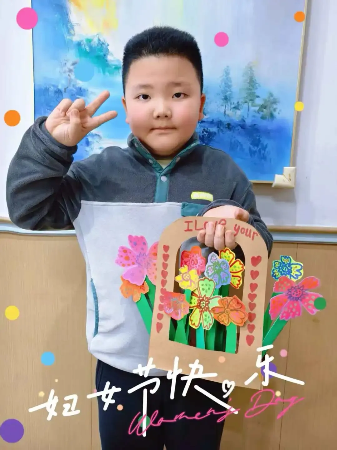 1-2年级以“萌娃传情,感恩有你”为导向,开展“语言传情”和“行动感恩”两大活动。孩子们主动走到妈妈、奶奶、外婆等女性长辈身边,看着她们的眼睛,大声说出真挚的节日祝福,一句句“妈妈,我爱你”“奶奶,你辛苦啦”,稚嫩的童声里满是真诚;同时用小小的行动分担长辈的辛劳。
