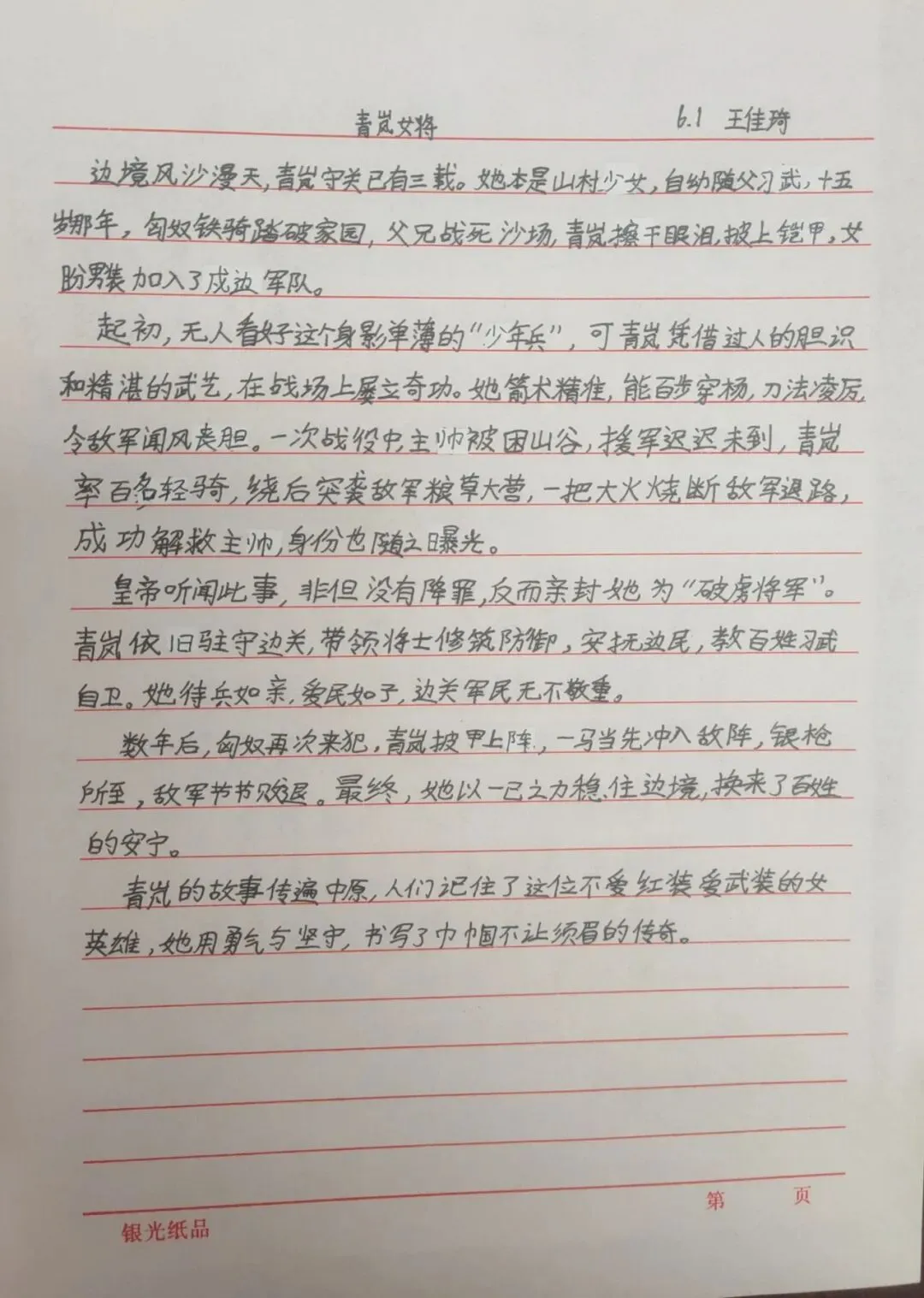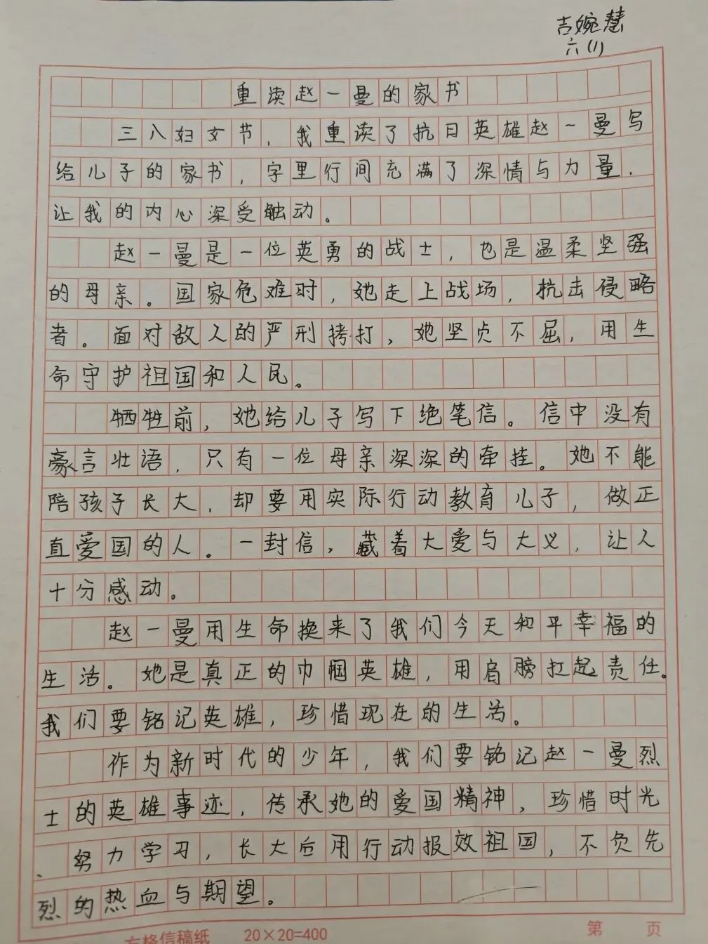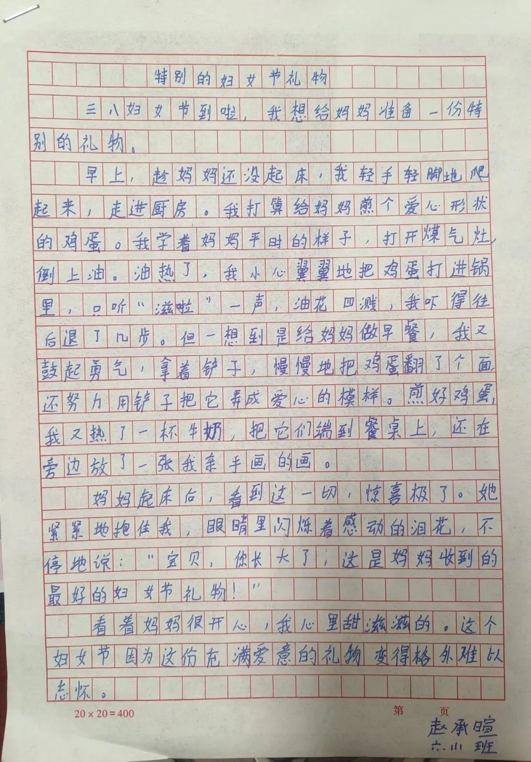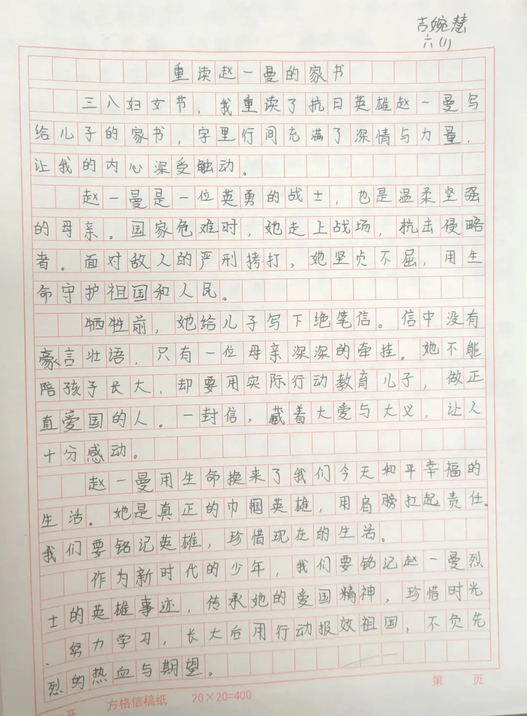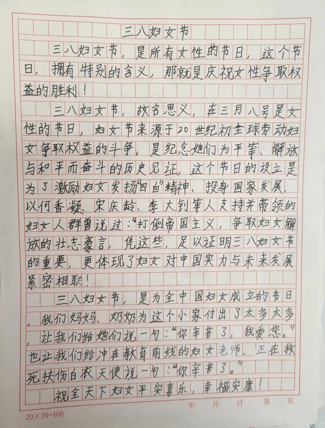 5-6年级以“致敬她力量,执笔诉心声”为核心,将感恩教育与责任教育、榜样教育相结合。孩子们向长辈送上饱含深情的专属祝福,表达自己的感恩与牵挂;同时,独立完成家务劳动,体验女性长辈的一日辛劳。此外,孩子们自主查阅屠呦呦、张桂梅、王亚平、居里夫人等优秀女性的事迹,通过撰写感悟致敬女性力量。