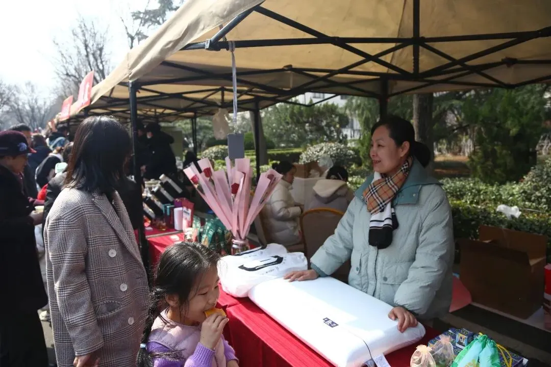 在南郊宾馆景色秀丽的千亩园林内,春风拂面,阳光和煦,竞相开放的玉兰、连翘、迎春花的芬芳与各类美食的诱人香气,此起彼伏的欢声笑语、悠扬的声乐演奏,孩子们嬉闹的声音相映成趣。市集现场,百余个精品摊位鳞次栉比,通过多元主题分区,打造出沉浸式体验场景,彰显了文旅融合的新意。