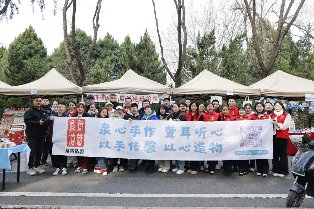 “助农手作区”融合了第一书记直供农产品与残障手工艺人非遗创作,实现助农帮扶与文化传承双效合一。在济南聋人协会巾帼创业摊位上,一幅幅精美的工艺画框、一个个造型别致的手造葫芦灯、色彩斑斓的非遗扎染作品静静陈列。身穿红马甲的南郊青年志愿者们有的充当“销售员”,通过手写板、手势与听障商户进行沟通,向游客热情推介;有的化身“安全员”,帮助商户做好用火、用电、用气的安全排查,确保活动安全有序进行。南郊宾馆办公楼党支部和会议服务党支部的党员们深入经营一线,为残障人士提供志愿服务,发挥了党支部战斗堡垒作用和党员的先锋模范作用。一位购买了剪纸作品的市民感慨:“这不仅是一件艺术品,更是一份有意义的公益支持。”