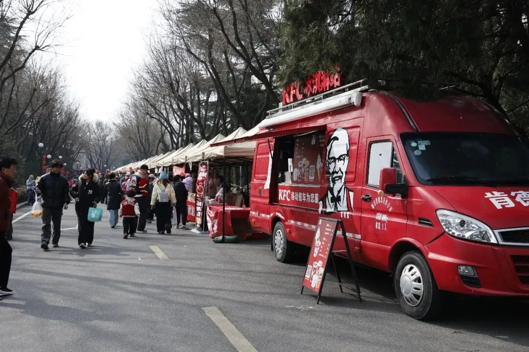 “围炉煮茶休闲区”,特设的乐队表演为市民游客营造了轻松惬意的游园氛围。在音乐声中,亲朋好友围炉而坐,品茗赏景,尽享春日悠闲。网红美食区飘来阵阵香气,肯德基、必胜客等知名品牌及各地特色小吃摊位前排起小长队,市民表示“一边赏春景,一边品美食,这才是周末该有的样子。”