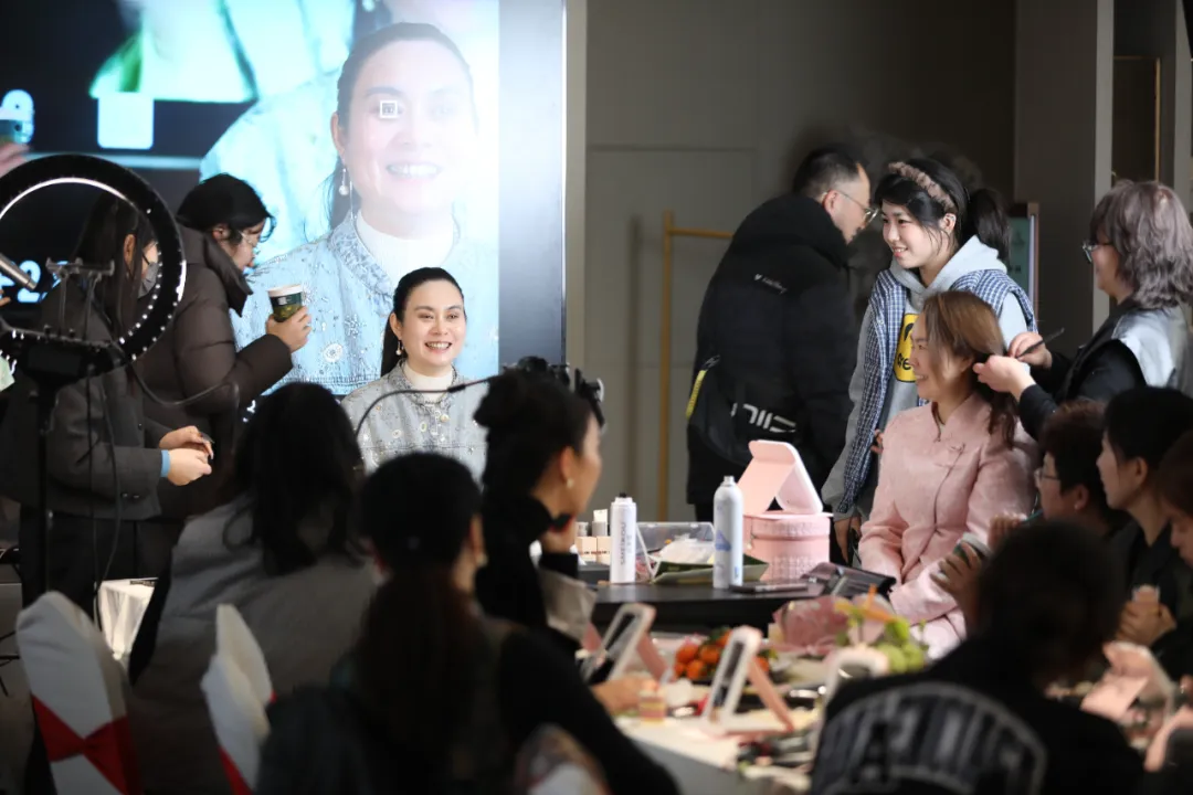 活动重头戏——化妆造型课正式开始。许多姐妹带来了自己的彩妆包,维罗纳摄影的专业老师从日常妆到中式宴会妆,手把手教授技巧与心得。大家认真聆听,积极互动,在老师的指导下,一笔一画勾勒出属于自己的精致妆容。